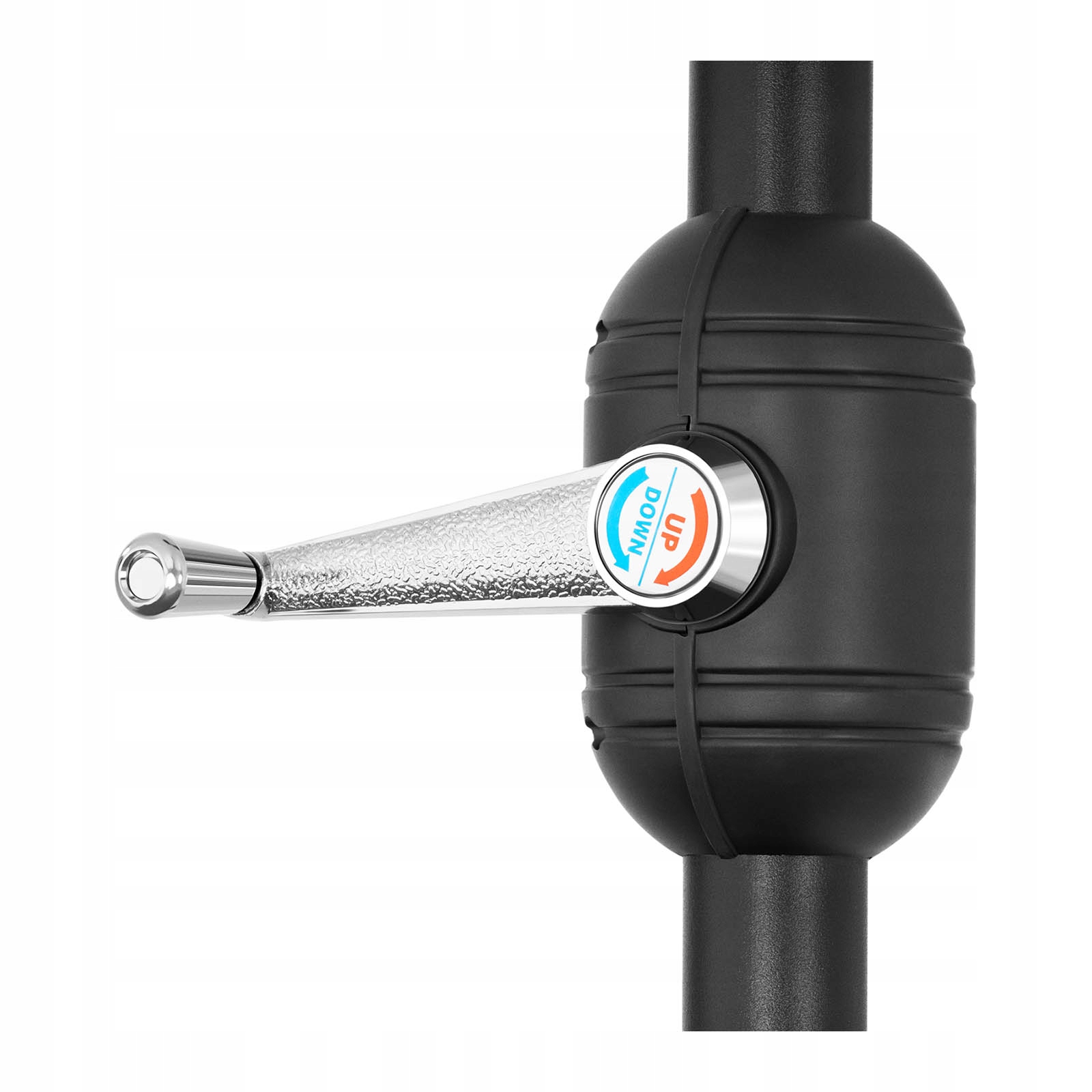 Ви можете пристосувати парасольку до переважаючих умов всього за кілька кроків! Залежно від положення сонця ви можете легко нахилити купол, щоб вирівняти тінь. Крім того, завдяки рукоятці ви можете швидко відкривати/закривати парасольку тераси.
