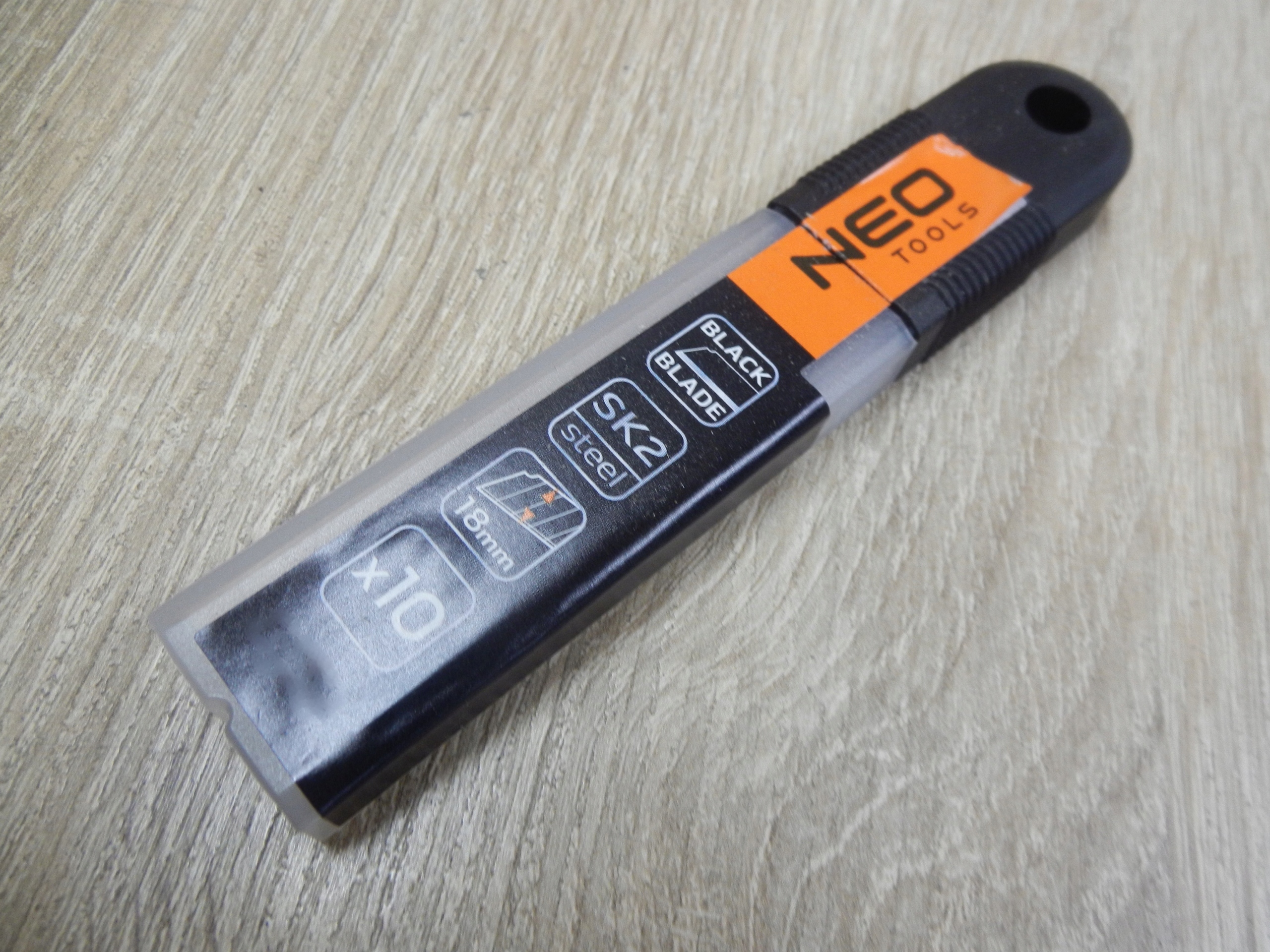 ЗМІННЕ ЛЕЗО, чорний NEO, шириною 18 мм, набір з 10 предметів призначений для роботи вдома, майстерні, будівельних, оздоблювальних та художніх робіт, а також DIY. Це буде корисно для різання або формування багатьох матеріалів і предметів. Ці леза надзвичайно гострі та виготовлені зі сталі SK2. Скошений кінець сприяє точному різанню. Набір дозволяє легко і швидко замінити зношене лезо на інше. Легкий і невеликий за розміром, він ідеально підходить для транспортування.