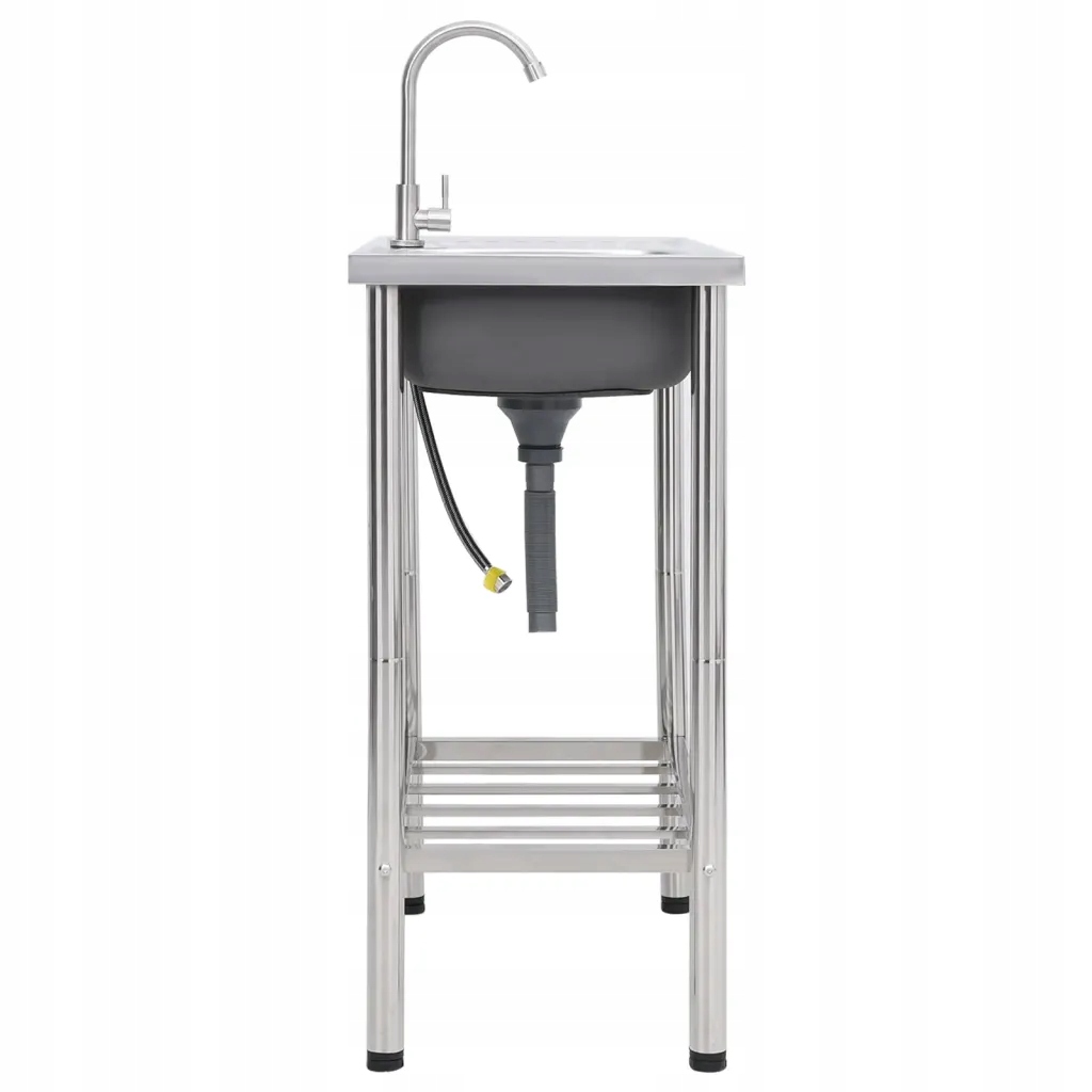Ця кемпінгова раковина має велику чашу зі зливним отвором і краном і є чудовим вибором для використання на вулиці. Виготовлена з нержавіючої сталі, садова мийка стійка до подряпин і ударів, дуже міцна і дозволена для контакту з харчовими продуктами. Він також стійкий до бруду та плям, тому його легко підтримувати в чистоті. Надзвичайно глибока камера забезпечує достатньо місця для миття великих каструль і посуду. Стік стане в нагоді не тільки при митті посуду, але і при приготуванні їжі. Крім того, цю раковину можна легко транспортувати.