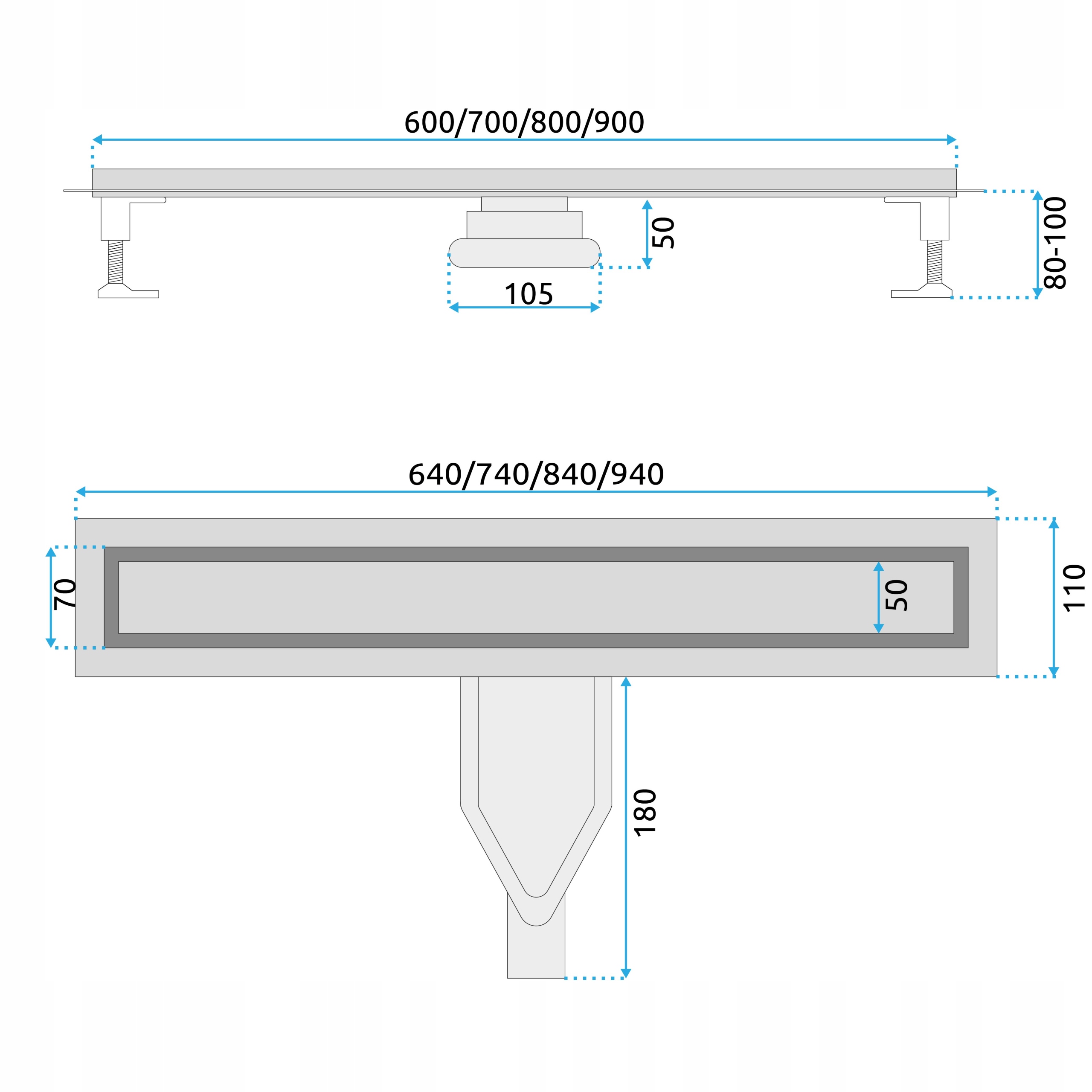 Ніжки дозволяють повністю регулювати висоту зливу відповідно до ваших потреб і варіантів встановлення. Мінімальний діапазон регулювання 52 мм, максимальний 68 мм. Низький профіль 52 мм наразі є найнижчим лінійним зливом на ринку.