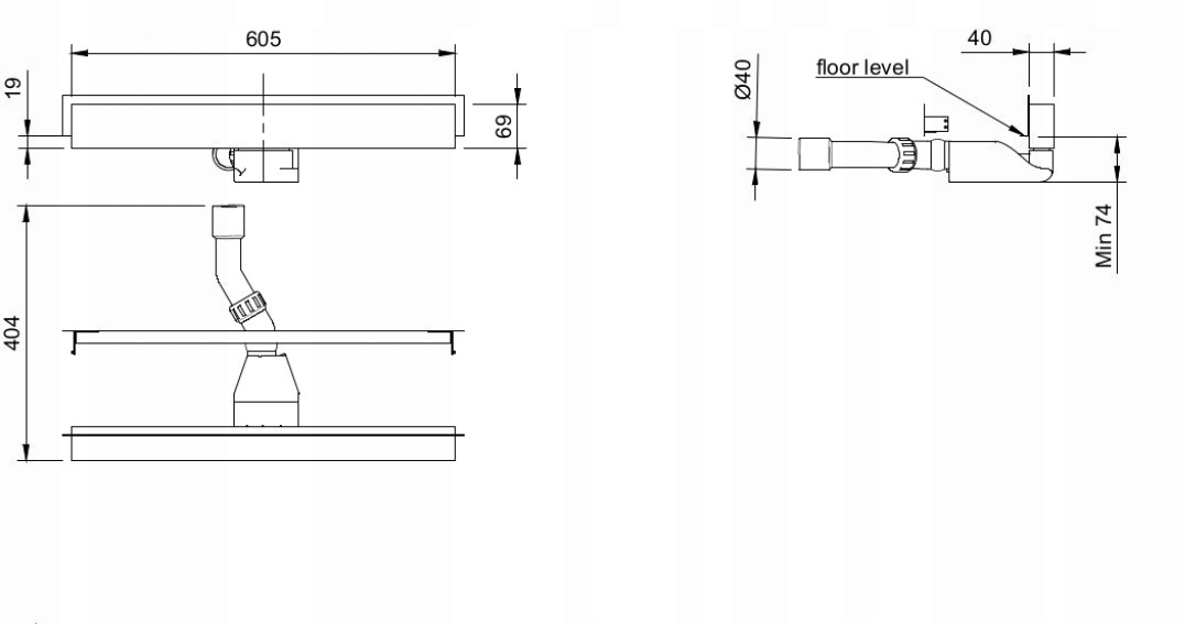 Дуже тонкий злив із німецьким сифоном VIEGA.