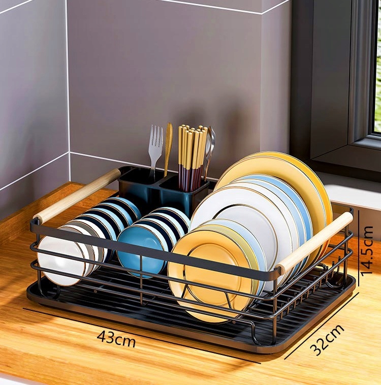 ✅Сушка для посуду характеризується дуже високою якістю та міцною та металевою конструкцією. Смоляний піддон захищає стільницю від намокання. У комплект також входить пластикова двокамерна сушарка для столових приборів. Металева чорна сушарка з дерев’яними ручками – елегантне рішення для будь-якої кухні.