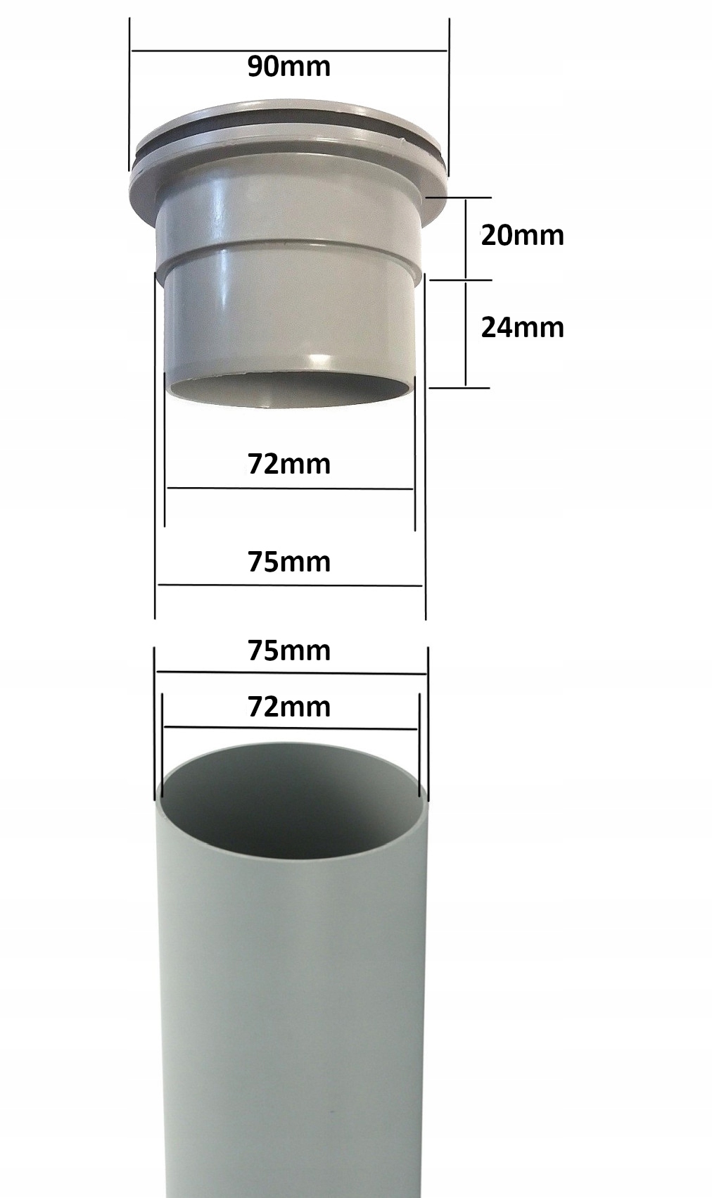 ВОРІЙКА ДРЕНАЖНА SZTUCER ДЛЯ ТРУБ 75 мм ДЛЯ ЖОЛОБІВ З ПЛОСКИМ ДНОМ