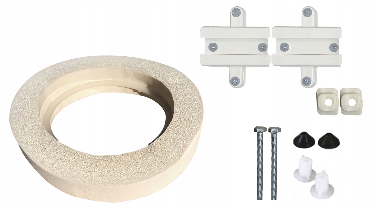 У набір входять: заливний клапан, зливний клапан, бак, гвинти, пінопластова прокладка, встановлена між бачком і порцеляною.