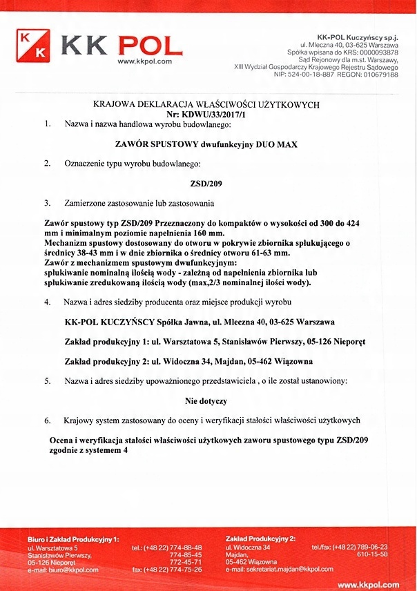 Усі зливні клапани від KK-POL універсальний і, отже, сумісний із більшістю типів бачків.