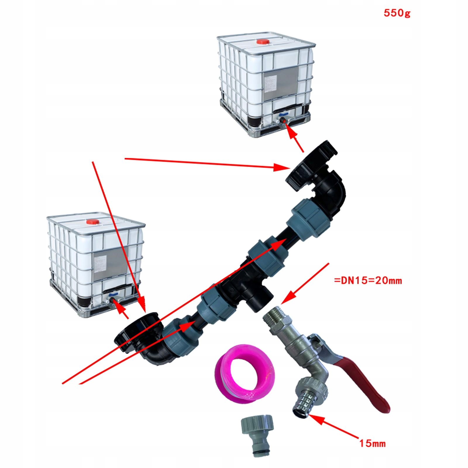 використовується для встановлення на резервуарі IBC або іншого шланга, різноманітності технічних характеристик та універсальних;