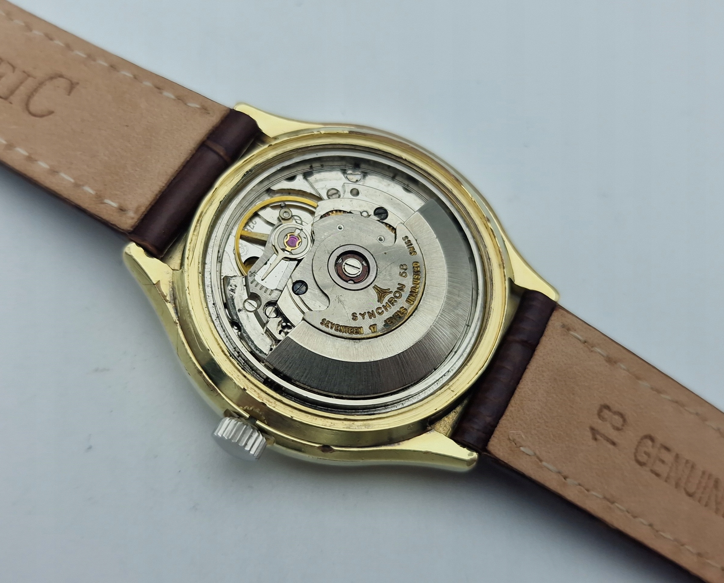 - Механізм автоматичного годинника з 17 дорогоцінними каменями, зі швейцарським якорем. На механізмі вибиті такі підписи: «SYNCHRON 58, SEVENTEEN 17 JEWELS, UNADJUSTED, SWISS». Механізм був перевірений і обслуговувався майстром годинників, працює добре і пунктуально, і знаходиться у відмінному стані.