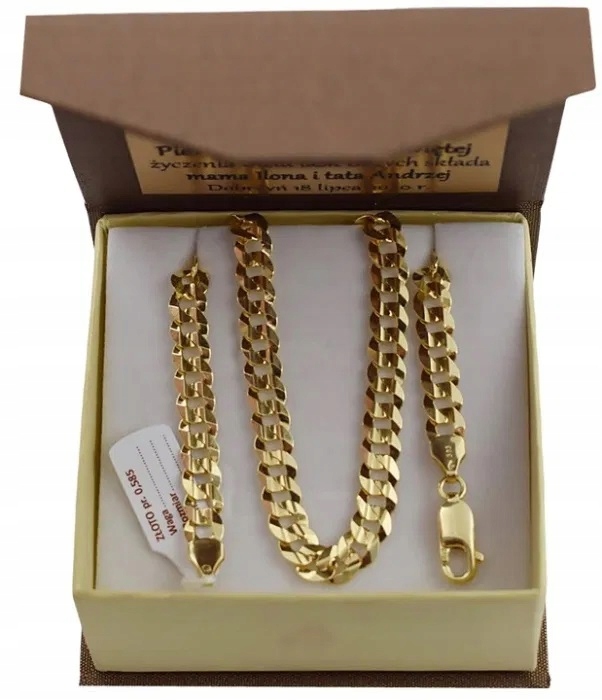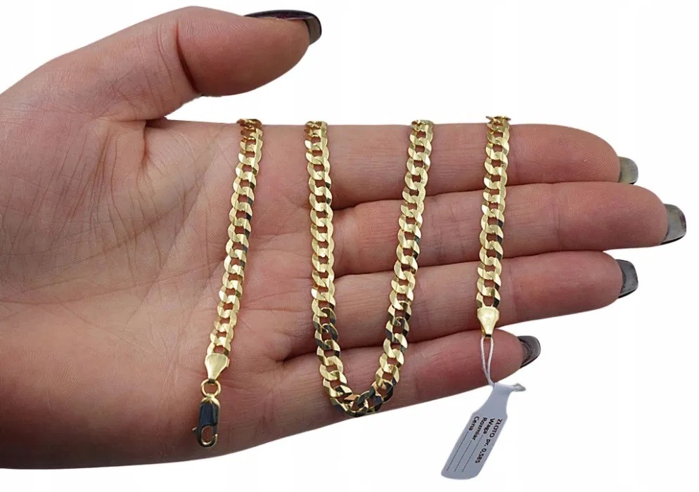 Ланцюжок новий з биркою, безпосередньо від виробника. Упаковано в стильну італійську скриньку для коштовностей. Це було точно зроблено. Має безпечну застібку, яка запобігає його поломці. Крім того, він покритий алмазом, що надає йому ідеального блиску. Виготовлений із золота 14 карат. 585. Клеймо Держпробірної служби. Ми також рекомендуємо інші довжини та товщини цього візерунка, доступні в нашому магазині. На всіх фотографіях показано саме те, що продається.
