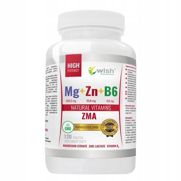 Wish Mg+Zn+Vit B6 - це солідна порція магнію, цинку та вітаміну B6. Ці інгредієнти чудово впливають на багато процесів, що відбуваються в організмі, завдяки чому покращують загальний стан здоров’я. Це відмінна пропозиція для спортсменів і людей, які працюють фізично. Обидві ці групи людей обтяжені надмірними фізичними навантаженнями, що сприяє швидкому вимиванню вітамінів і мінералів. Крім того, цей препарат також буде дуже корисним для всіх, хто піклується про збереження здоров’я, незалежно від того, чи є вони фізично активними чи ні.Wish Mg+Zn+Vit B6 доступний у формі зручні таблетки, вкриті оболонкою, в яких немає місця штучним барвникам, м чи консервантам.