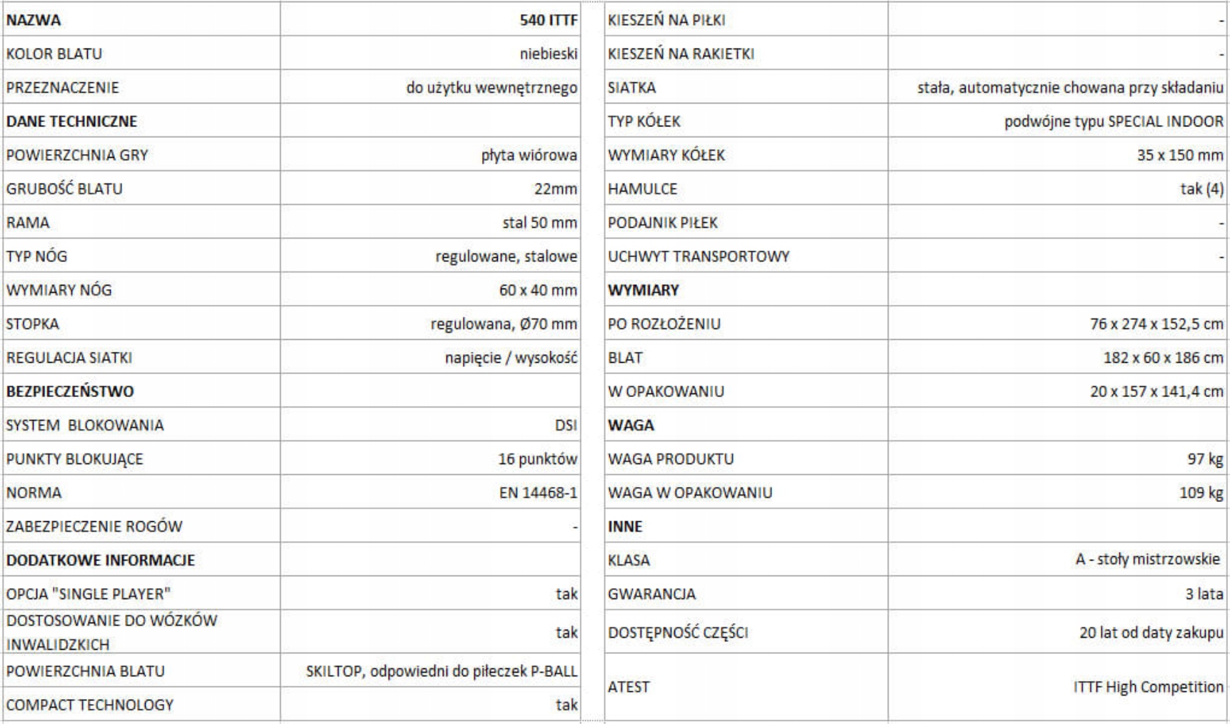 ІНВАЛІДІ Завдяки спеціальній конструкції столу він пристосований для гри гравцями в інвалідних візках і має сертифікат ITTF W i відповідає всім стандартам.