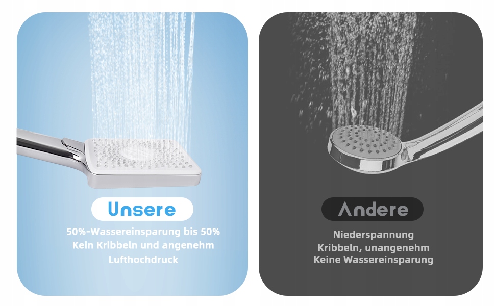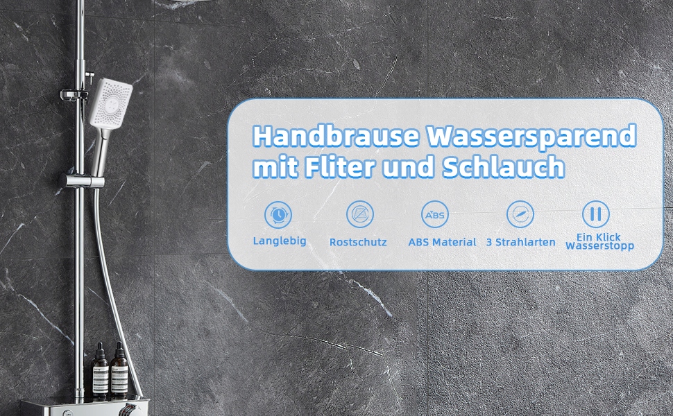 ZMH Водозберігаюча, квадратна душова лійка з 3 струменями, шланг 1,5 м