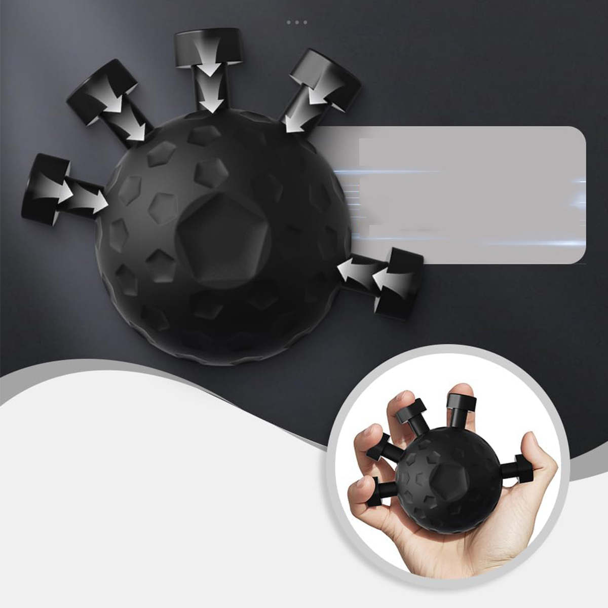 М'яч-антистрес для дорослих Оснащений п'ятьма регульованими стрижнями, кожен палець можна тренувати окремо. Ідеально підходить для зміцнення, відновлення після травм, зняття стресу або діяльності, яка потребує міцних м’язів, як-от скелелазіння або гра на інструментах.