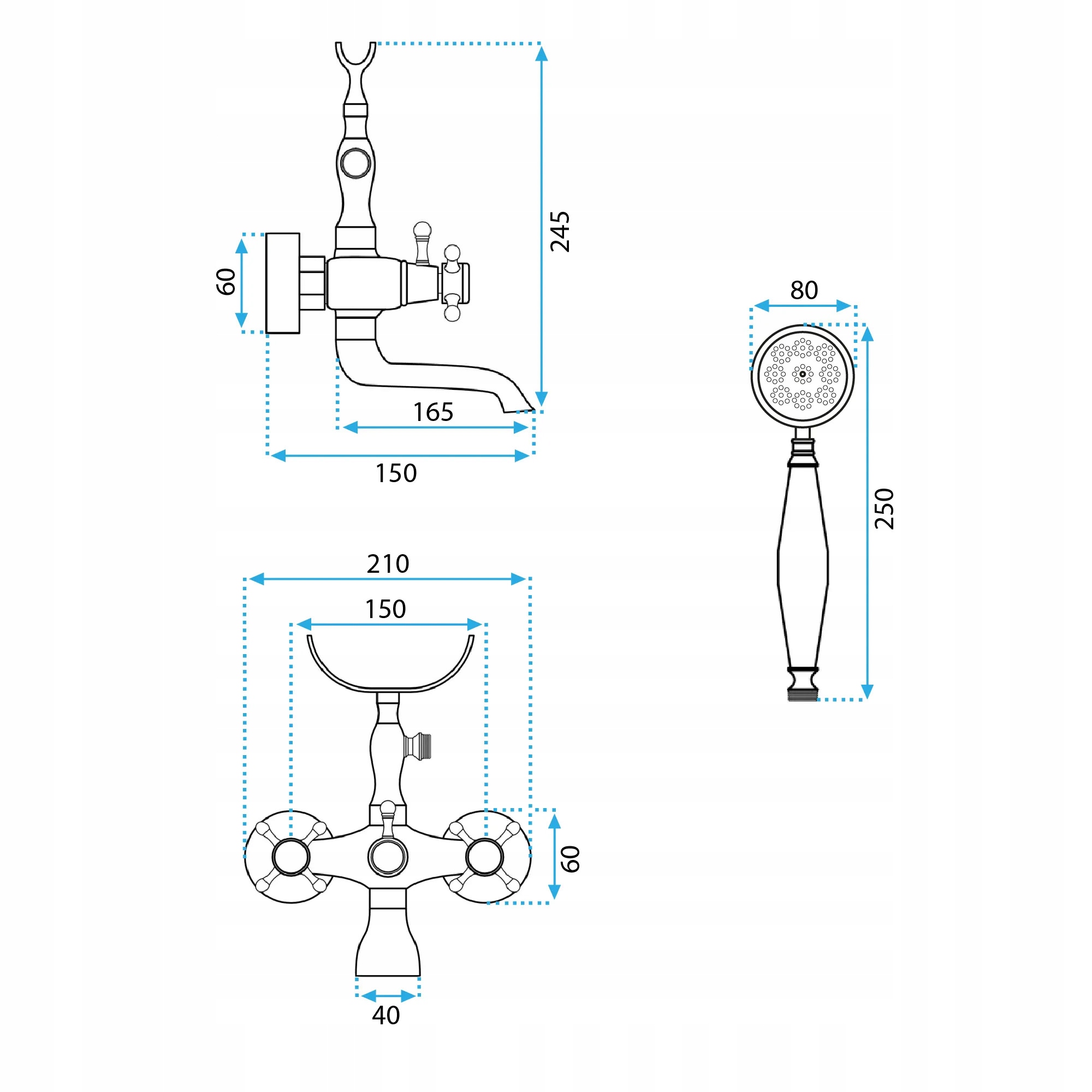 Ексклюзивне оздоблення та увага до деталей є найбільшими перевагами продукту. Змішувач призначений для настінного кріплення над ванною.