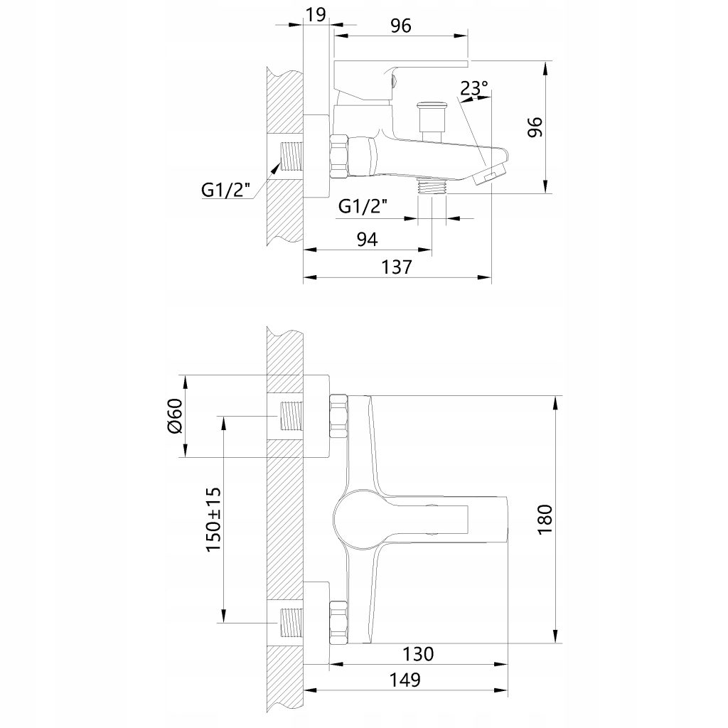 ЗМІН НА ВАННУ BRALOS НАСТІННИЙ, ОДНОРУЧКА, НАСТІННИЙ, ХРОМОВАНИЙ ХРОМ
