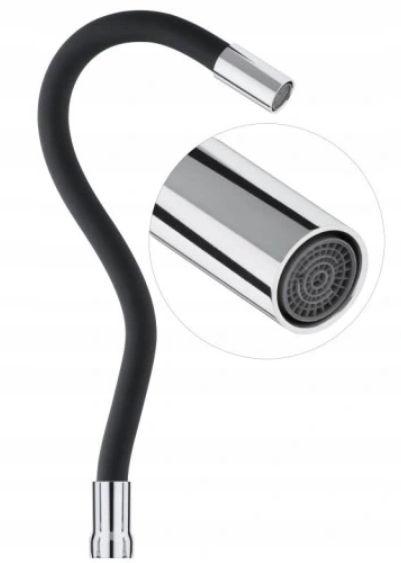Сучасний носик для кухонної батареї - практичне та стильне доповнення до кожної кухні. Гнучкий, гнучкий чорний шланг з порадами в хромовій обробці буде ідеальним у повсякденному використанні. Завдяки рухомому дизайну 360 °, це полегшує миття суден, наповнення горщиків та очищення мийки.