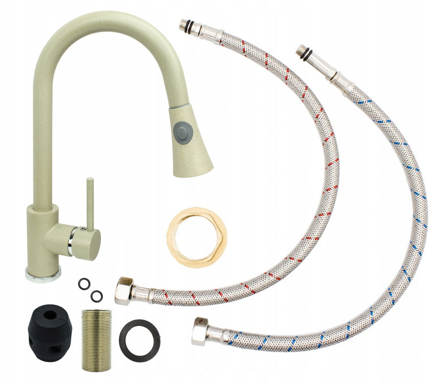 ЗМІЇНИЙ БЕЖЕВИЙ КУХОННИЙ КРАН З ВИСУВНИМ НОСИКОМ