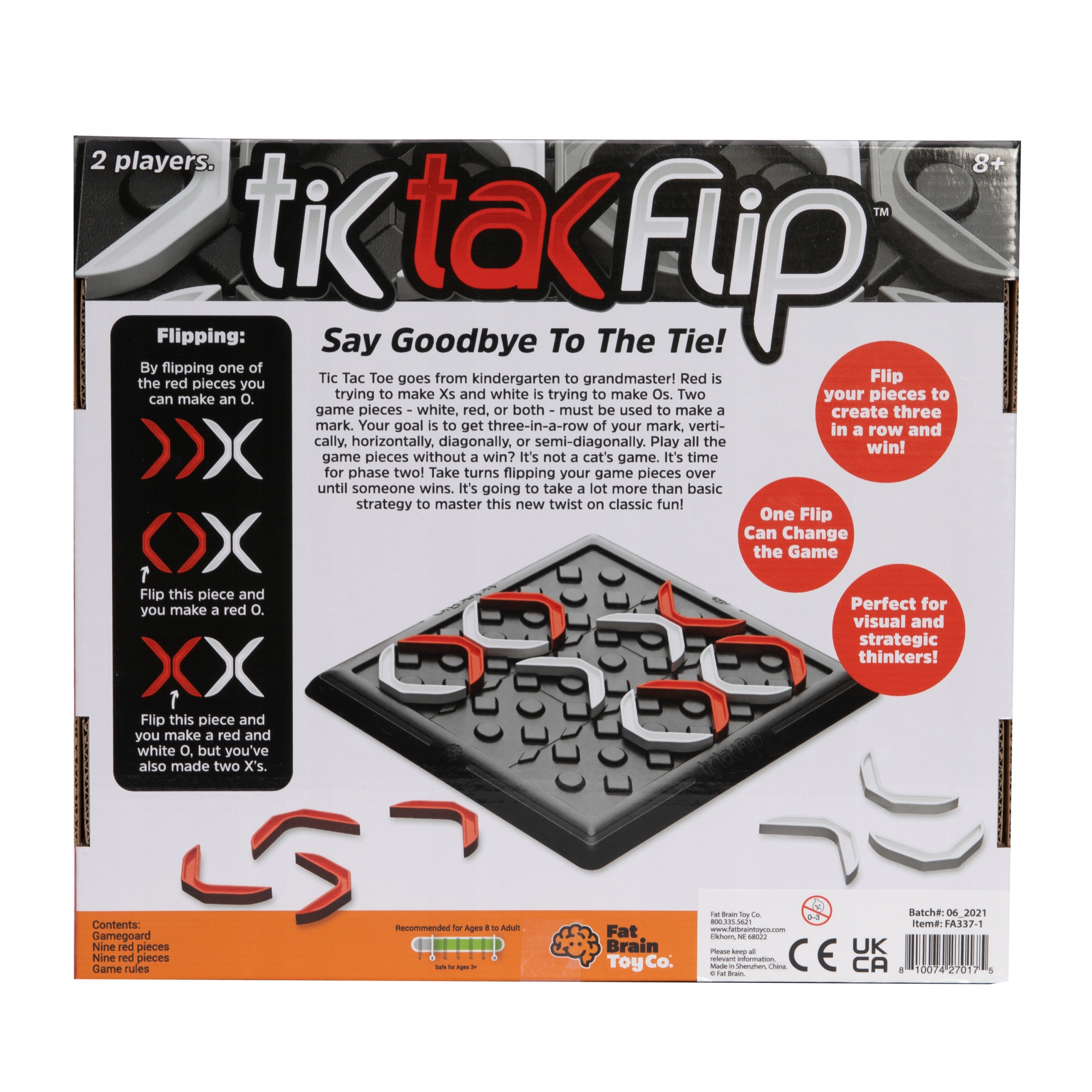 Новий підхід до класична гра Tic-Tac-Toe. Як і в класичній грі, гравці повинні розташувати три свої символи (O або X) в один ряд (вертикально, горизонтально або діагонально), щоб виграти. Кожен знак складається з двох елементів. Якщо дошка заповнена без виграшу, гравці по черзі перевертають фігури на дошці, щоб вирівняти свою позначку та виграти. Червоні елементи намагаються створити X, білі – O. Символи, розташовані в ряд, можуть бути білими, червоними або біло-червоними. Набір містить 18 елементів (9 червоних, 9 білих) і ігрове поле. Рекомендований вік від 8 років.