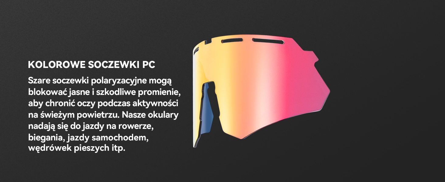 Наші окуляри підходять для їзди на велосипеді, лижах, мотоциклах, походів, бігу, бігу, альпінізму, пригод, марафону та інших видів спорту на відкритому повітрі.