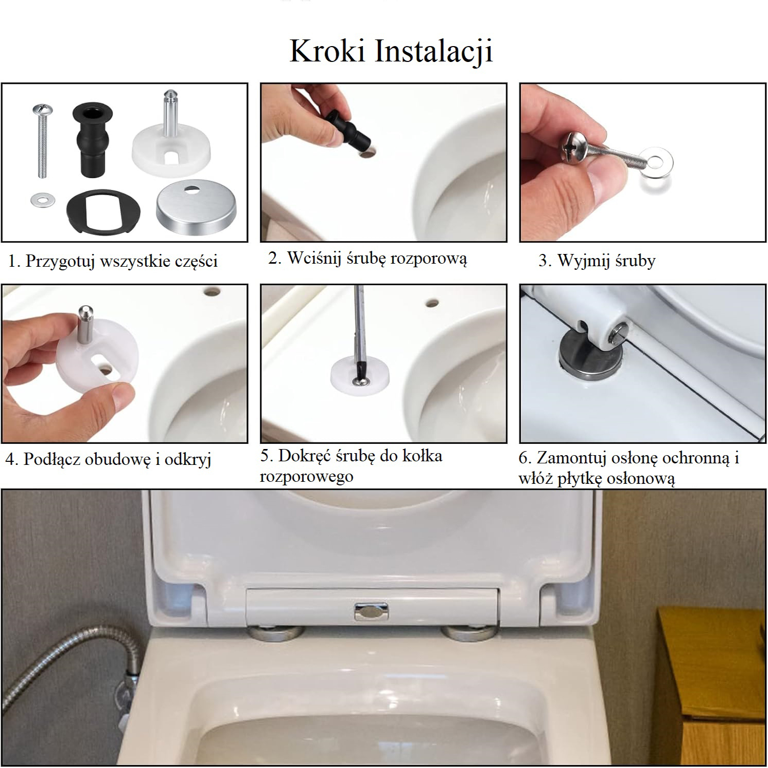 Практичний набір фіксації для туалетної плати є надійним рішенням для монтажу та заміни петлей. Пакет включає чотири роз'єми з сліпими отворами, оснащеними гумовими скампними болтами, медсестрами та прокладками. 4 Ідеально підходить для більшості стандартних моделей туалету.