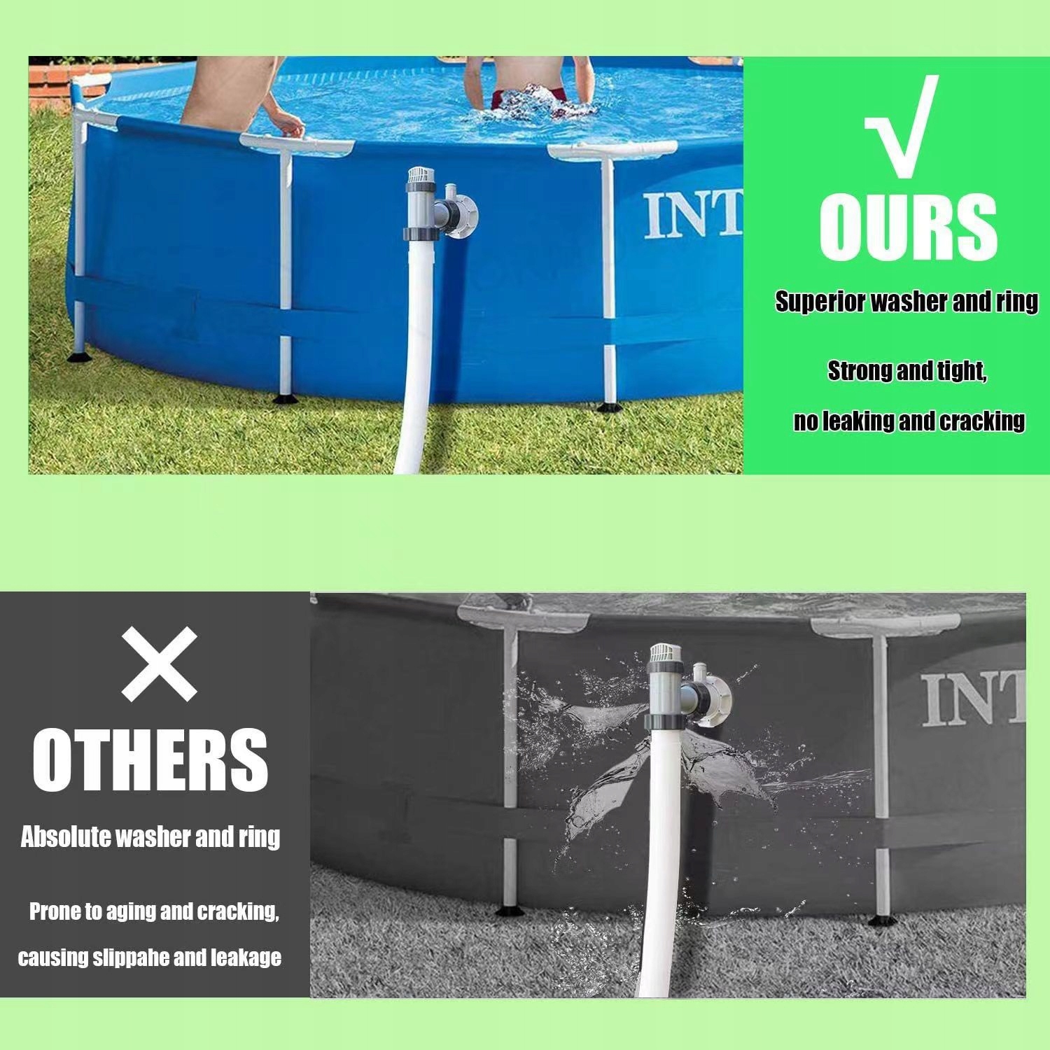 Сумісність і надійність: спеціально розроблені для стовпів басейну Intex, ці ущільнювачі забезпечують надійну та надійну посадку. Вони виготовлені з високоякісної гуми, щоб витримувати несприятливі умови та забезпечити тривалу роботу.