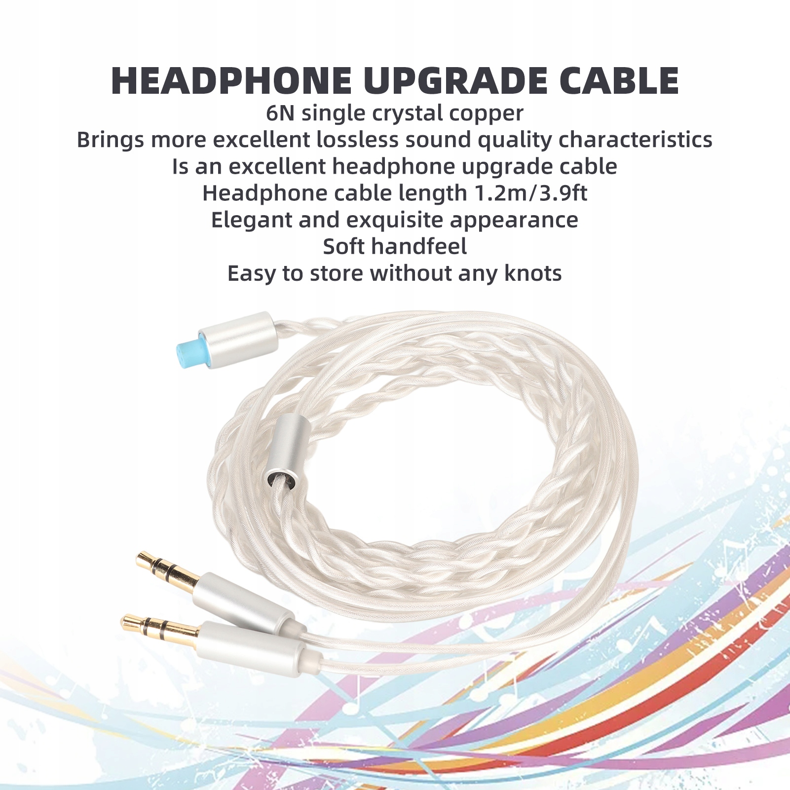 5. Елегантний зовнішній вигляд: змінний кабель навушників 3,5 мм має довжину 1,2 м/3,9 футів, кабель виглядає делікатно, але має елегантний і акуратний вигляд. Він м'який на дотик і його легко зберігати без вузликів.
