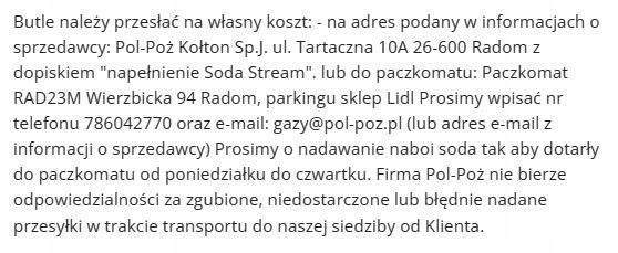 - за адресою, вказаною в інформації з приміткою " Soda Stream filling".