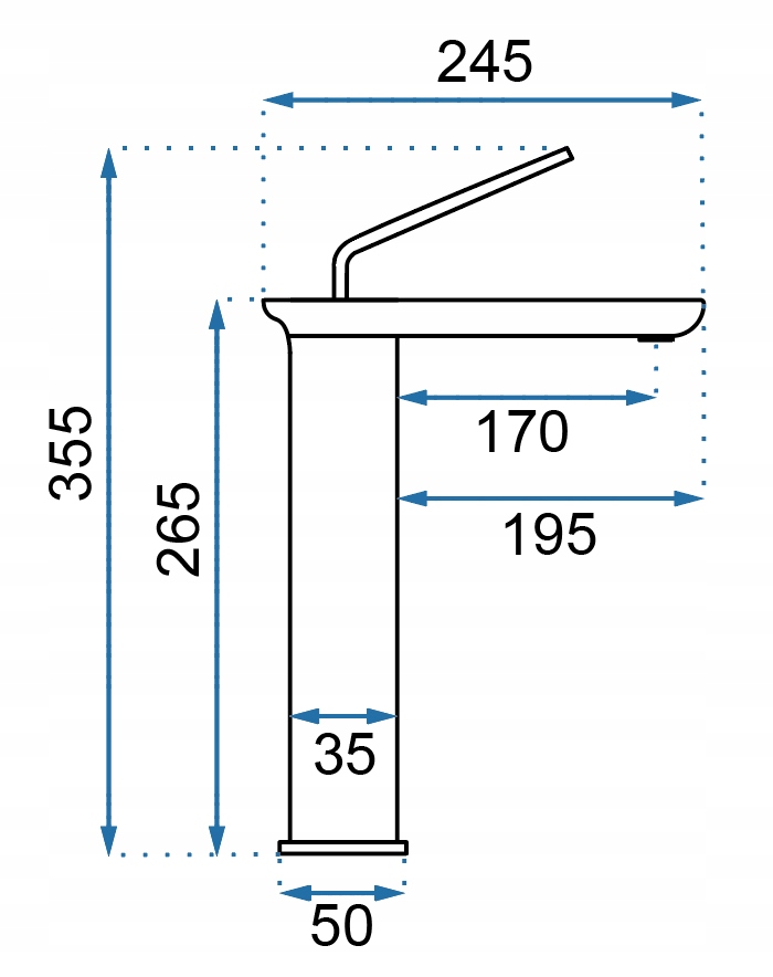 - Діапазон виливу: 195 мм