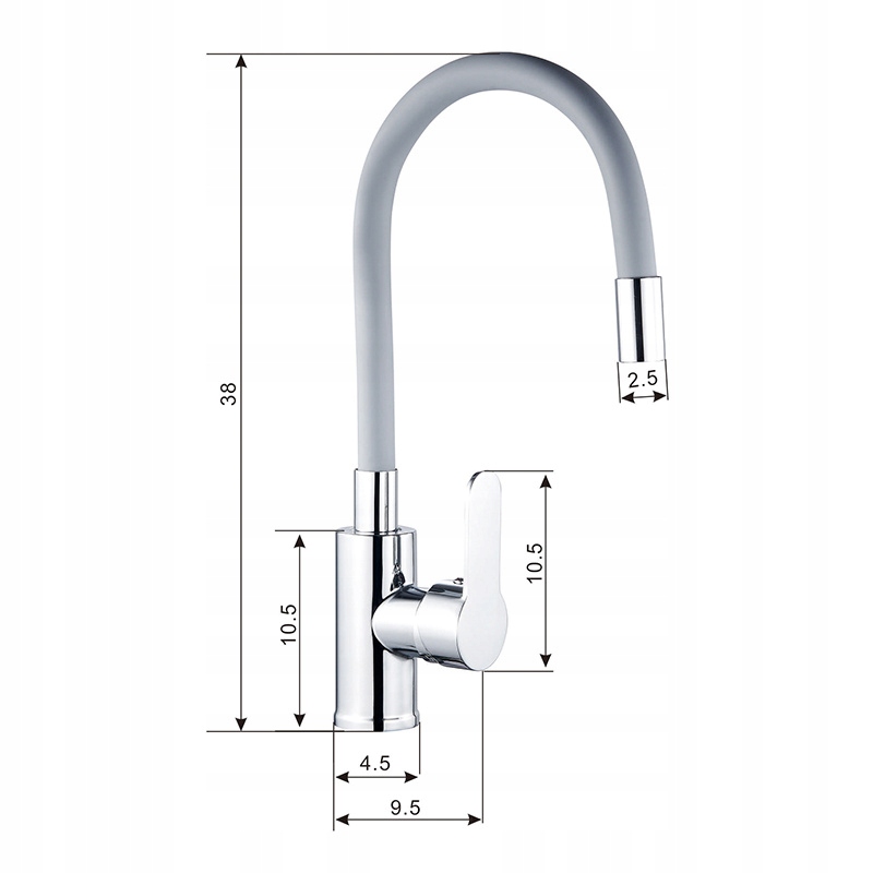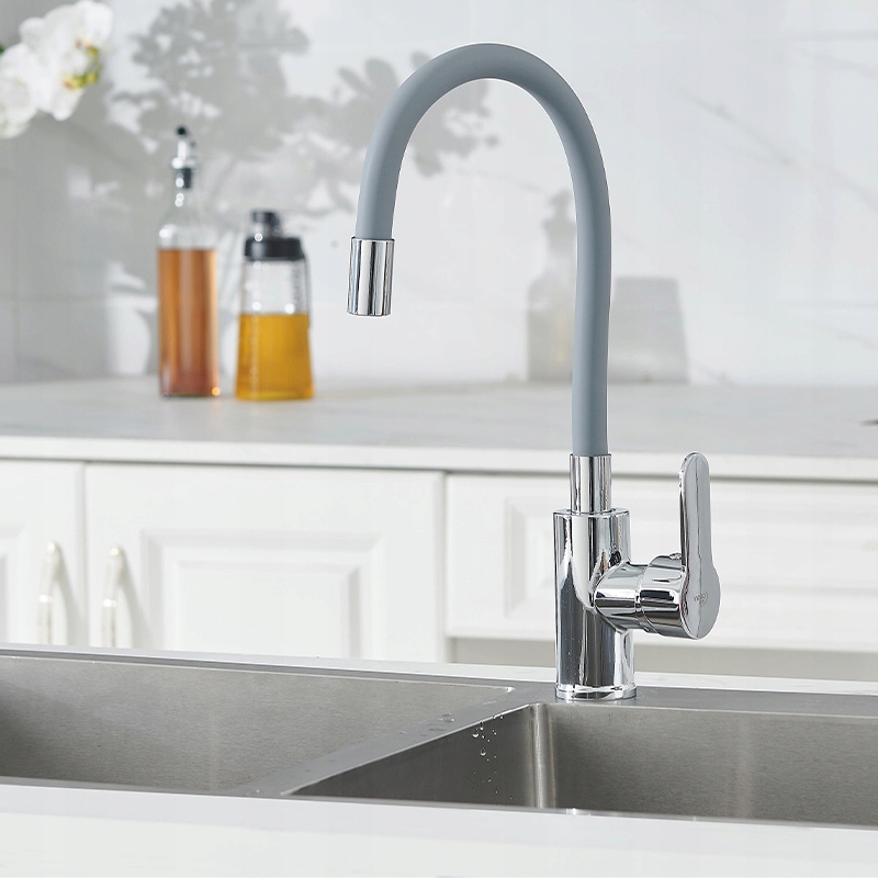 Змішувач DAX COUNTERTOP KITCHEN, ГНУЧКИЙ, СІРИЙ ВИЛИВ, ХРОМОВА ОСНОВА