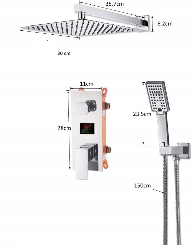 - настінний тропічний душ 30 см - SUS 304 STEEL