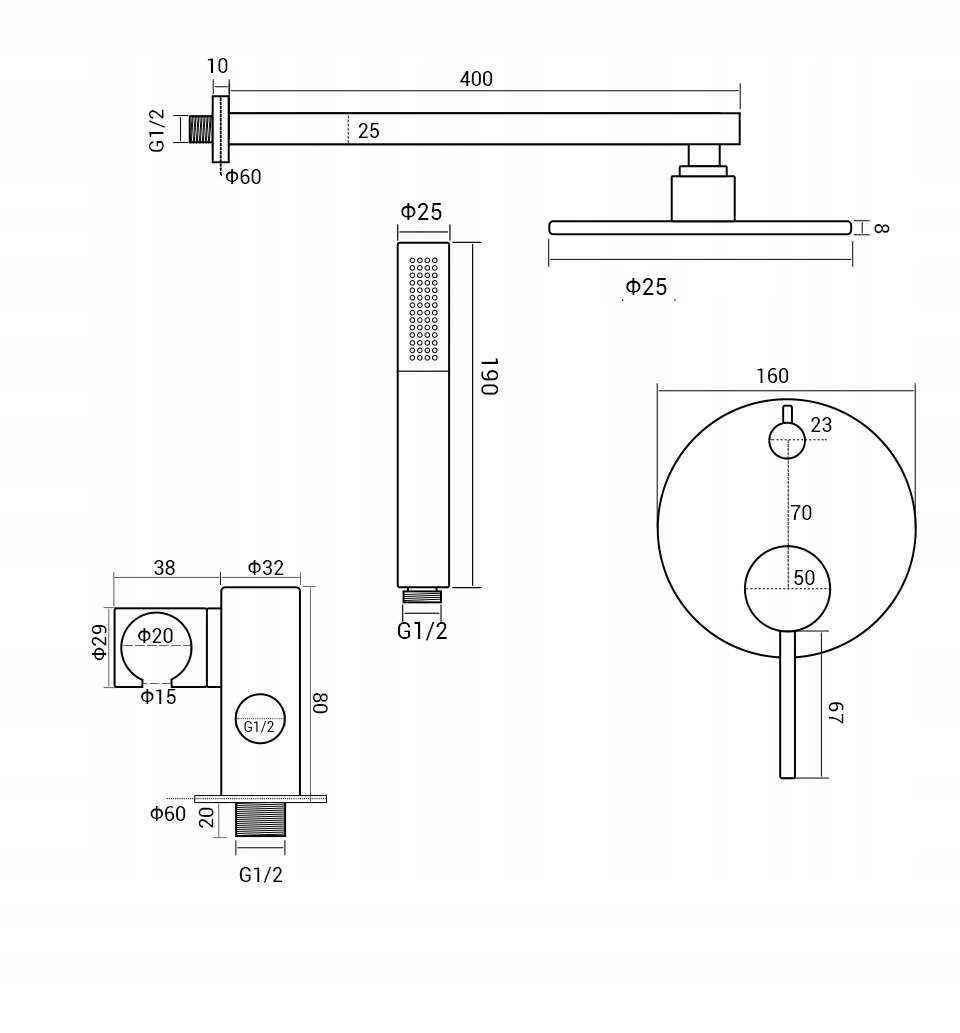 Душовий набір змішувачів для ванної кімнати оснащений тропічним душем, розміщеним над головою користувача. Вода, що витікає з квадратного тропічного душа, приймає форму дощу, приємно кроплячи голову і тіло. Він справляє враження масажу та забезпечує неймовірні враження від релаксації