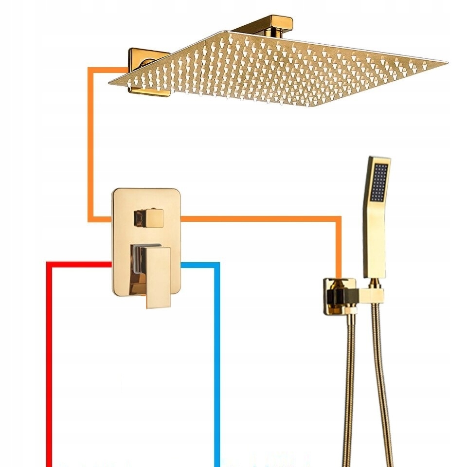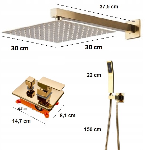 Представляємо вам душовий набір прихованого монтажу Gold POLER 30 - версія з BOX, латунною душовою лійкою та регульованою душовою лійкою