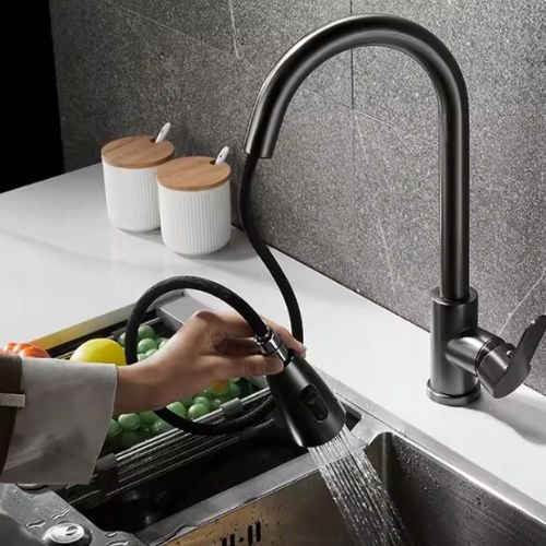 Кухонний змішувач BLACKPRO - чудовий вибір для людей, які цінують комфорт і функціональність. Оснащений висувним носиком і поворотом на 360°, він дозволяє легко мити посуд, мити раковину або наповнювати каструлі. Ідеально підходить для повсякденного інтенсивного використання - розроблено з урахуванням практичності та довговічності.