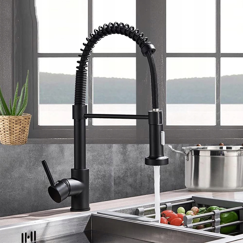 ⭐ Висувний і поворотний: кухонний змішувач висувається і повертається, що робить його більш гнучким і простим у використанні, коли вам потрібно змінити напрямок або інтенсивність потоку води. Конструкція з одним важелем дозволяє легко регулювати потік води та температуру на кухонному змішувачі.