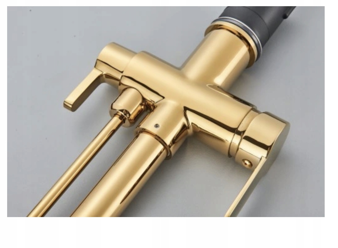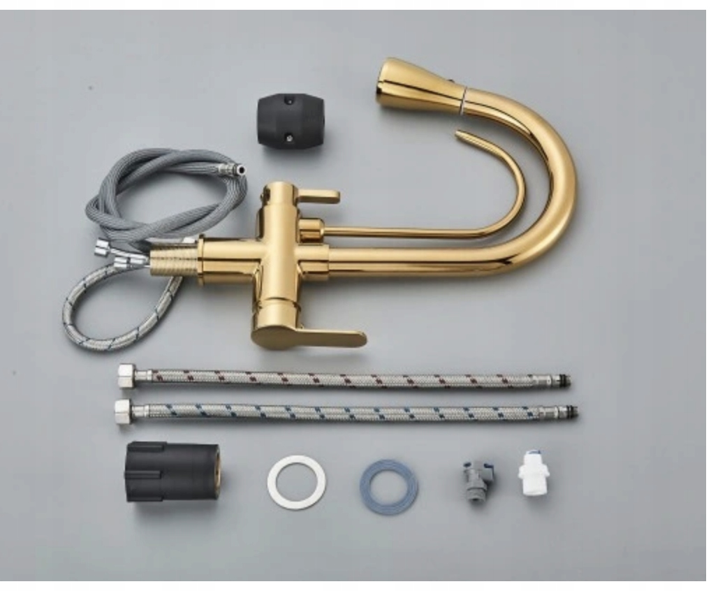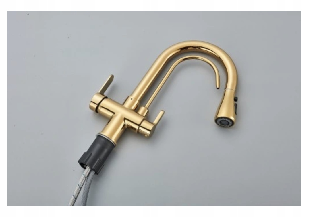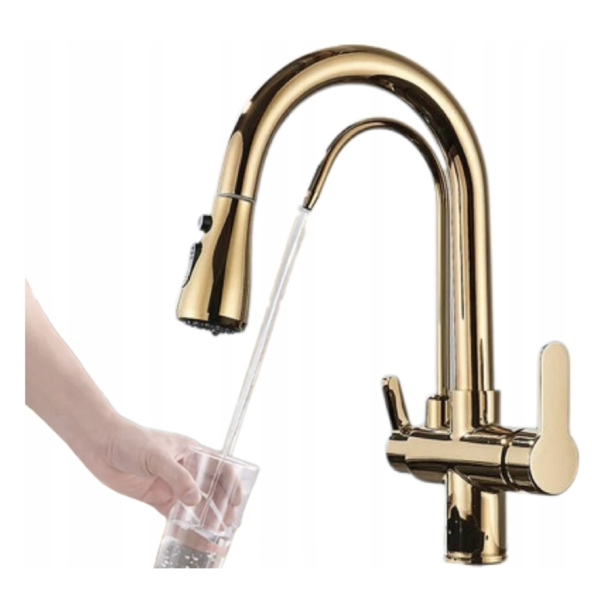 ТРИХОДОВИЙ КУХОННИЙ ЗМІШУВАЧ, ФІЛЬТР, ВИСУЙНИЙ ВИЛИВ, ЗОЛОТО