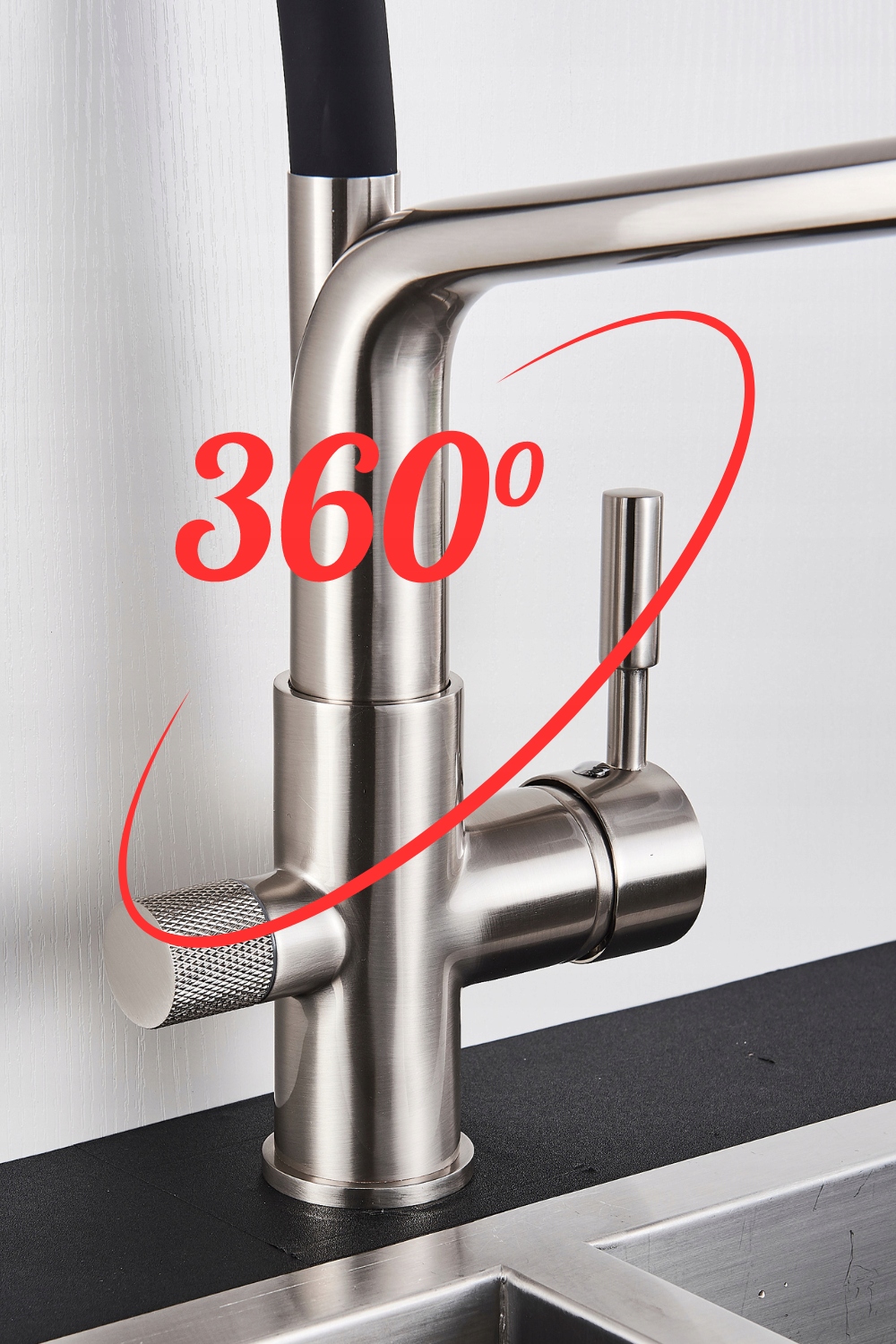 2. Зручність- завдяки поворотному носику ви можете легко наповнювати великі посудини, такі як каструлі або вази, не тягнучи їх до раковини. Просто поверніть носик і поставте посудину під струмінь води.