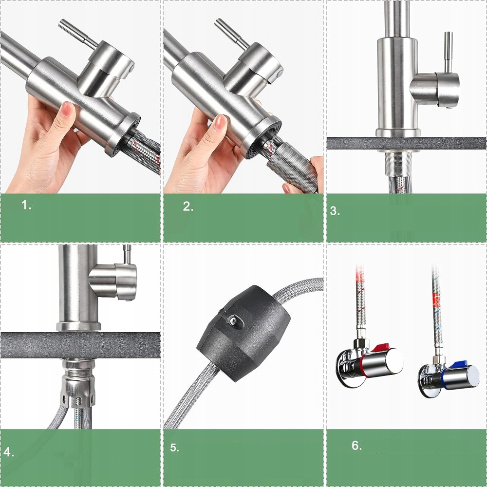 💦 Наш кухонний змішувач можна легко підключити до всіх систем напору води (гаряча вода ліворуч і холодна вода праворуч). Щоб встановити цей кухонний змішувач, дотримуйтеся детальних інструкцій зі встановлення.