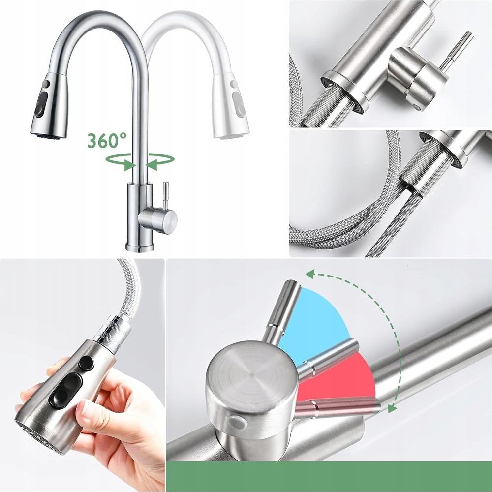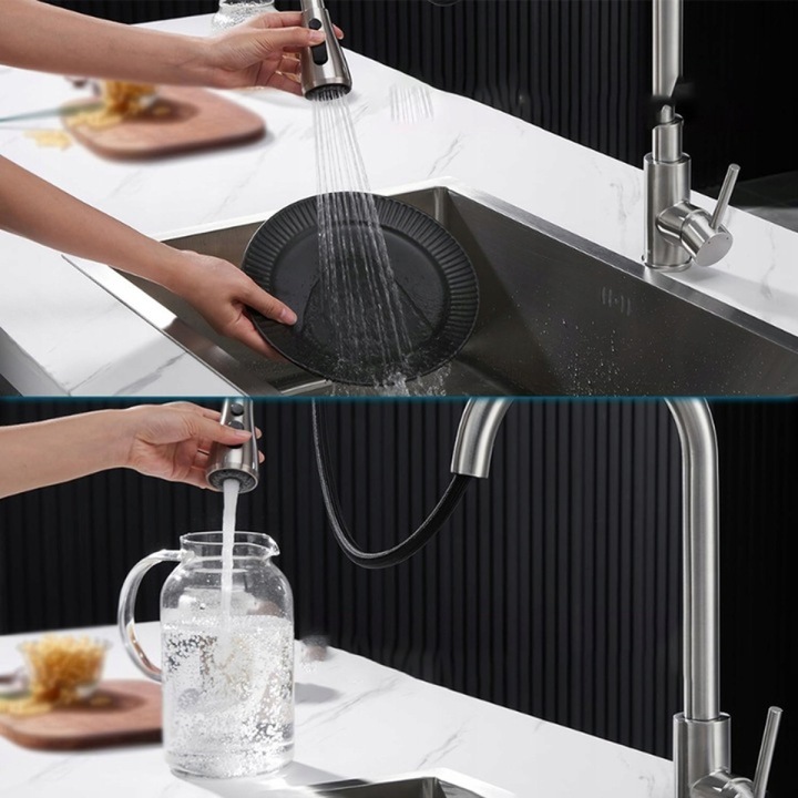 💦Цей висувний кухонний змішувач не тільки оснащений висувною душовою лійкою, але й може обертатися вільно на 360 градусів, що розширює асортимент кухонних змішувачів на вибір.