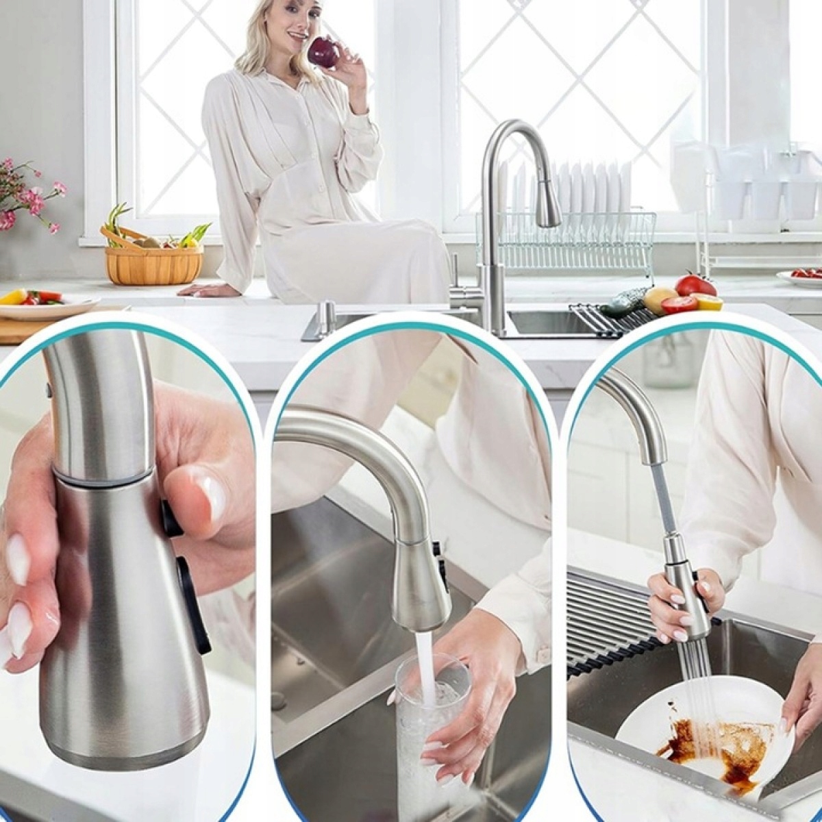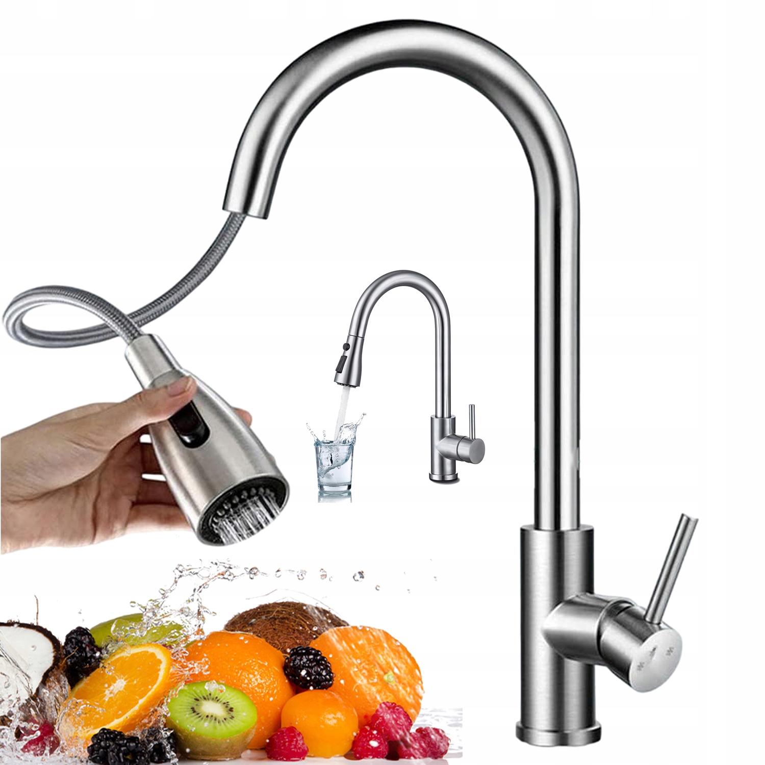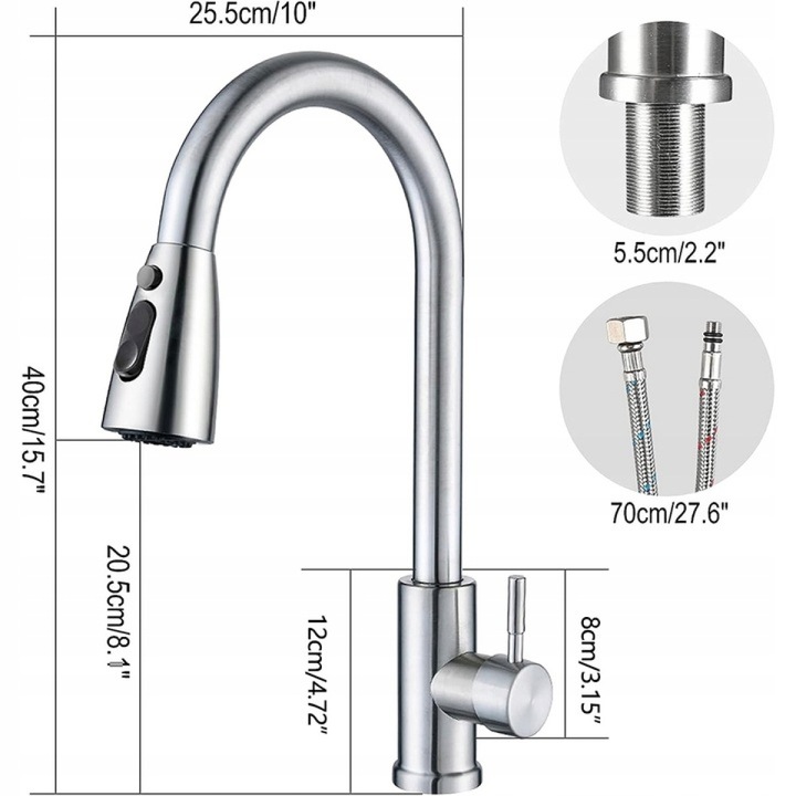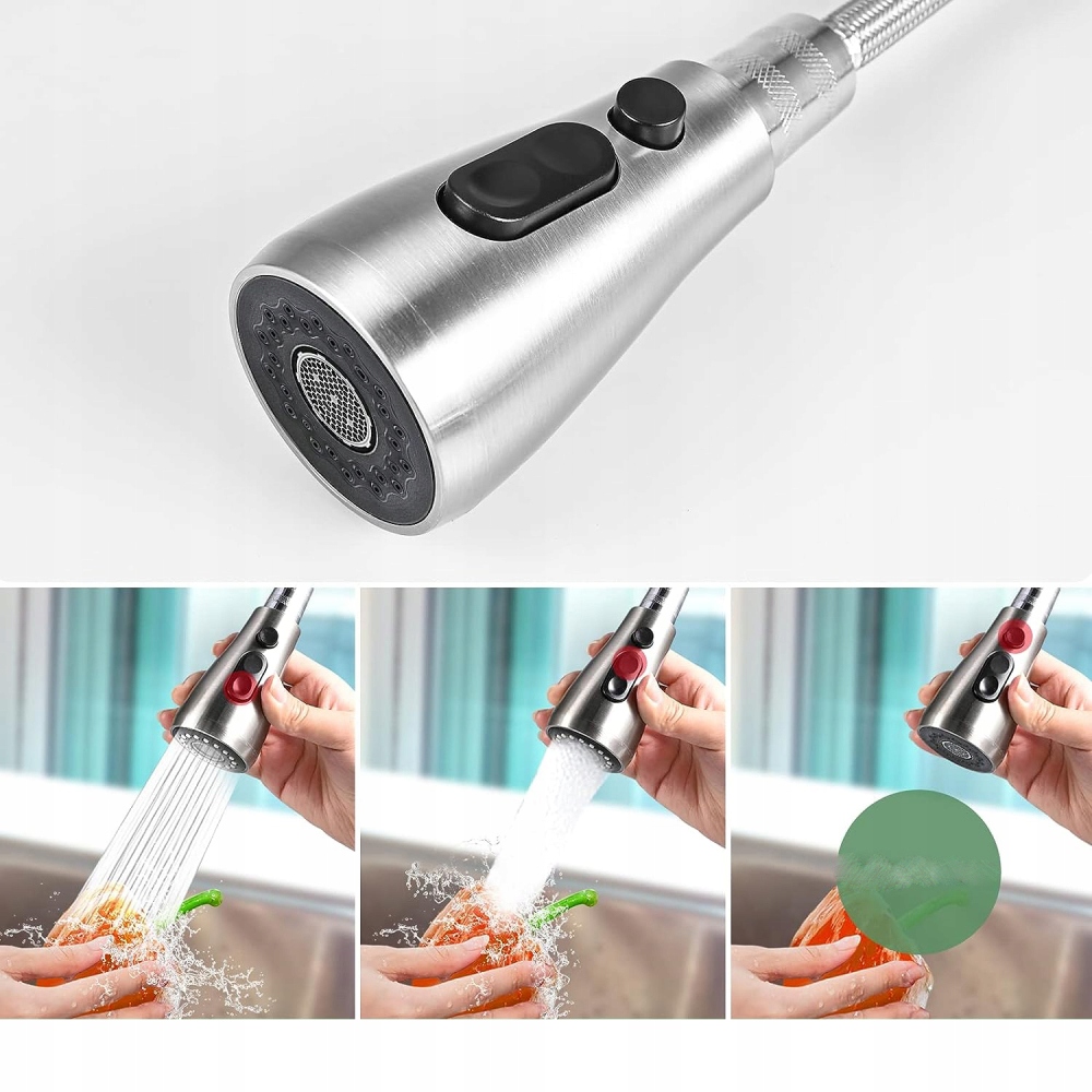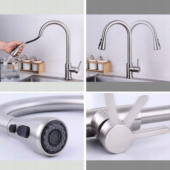 💦 Висувний кухонний змішувач виготовлено з високоякісної нержавіючої сталі 304, яка є стійкою до старіння, високого тиску та герметичності.