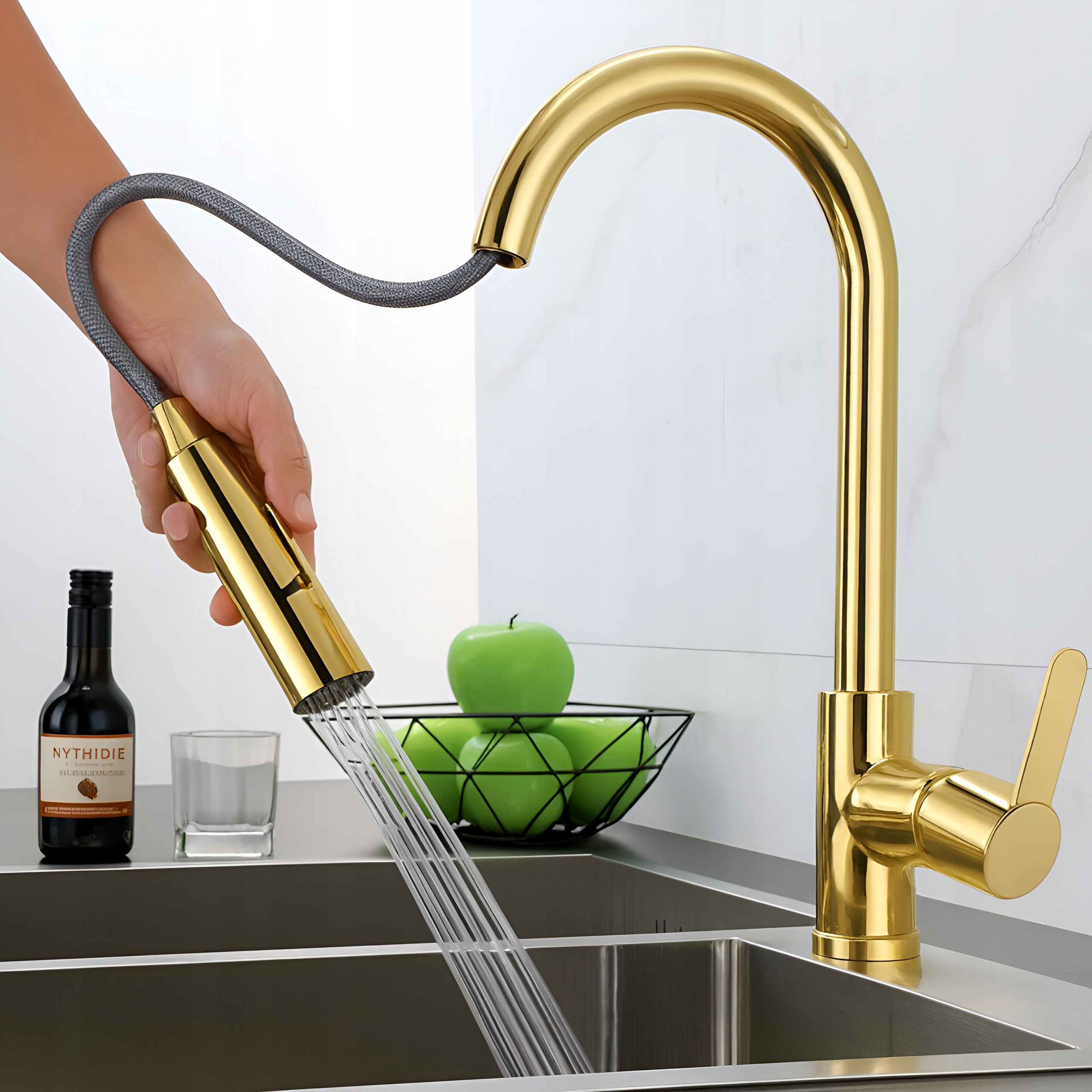 Кухонний змішувач DELVANT SLIM GOLD є синонімом розкоші та сучасної ергономіки. Його тонкий високий силует і ексклюзивне блискуче золоте покриття привнесуть елегантність у вашу кухню, а вдосконалена функція висувного носика та двох режимів потоку значно підвищить комфорт у повсякденній діяльності.