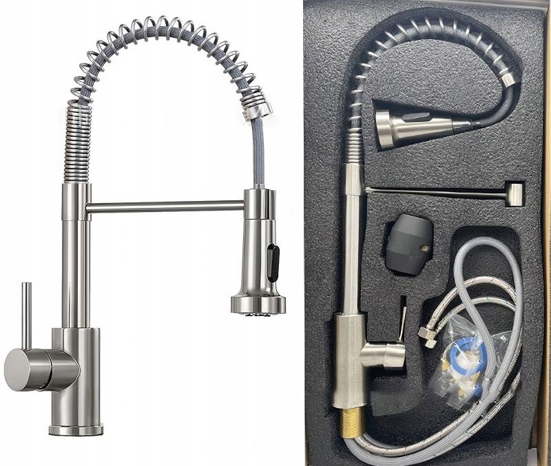 - Пружинний висувний вилив із перемикачем для функції душу -ідеально підходить для миття великого посуду