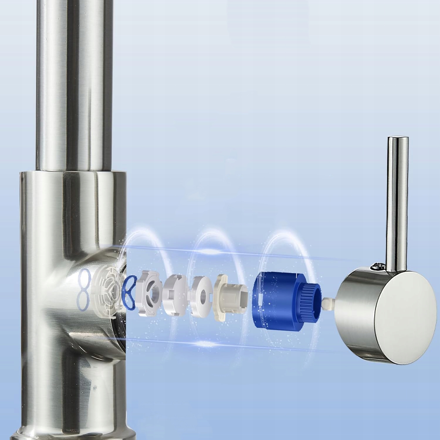 - 360-градусний носик та висувна функція забезпечують максимальну гнучкість під час прання, дозволяючи легко регулювати потік води відповідно до різних потреб, що призводить до підвищеного комфорту використання.
