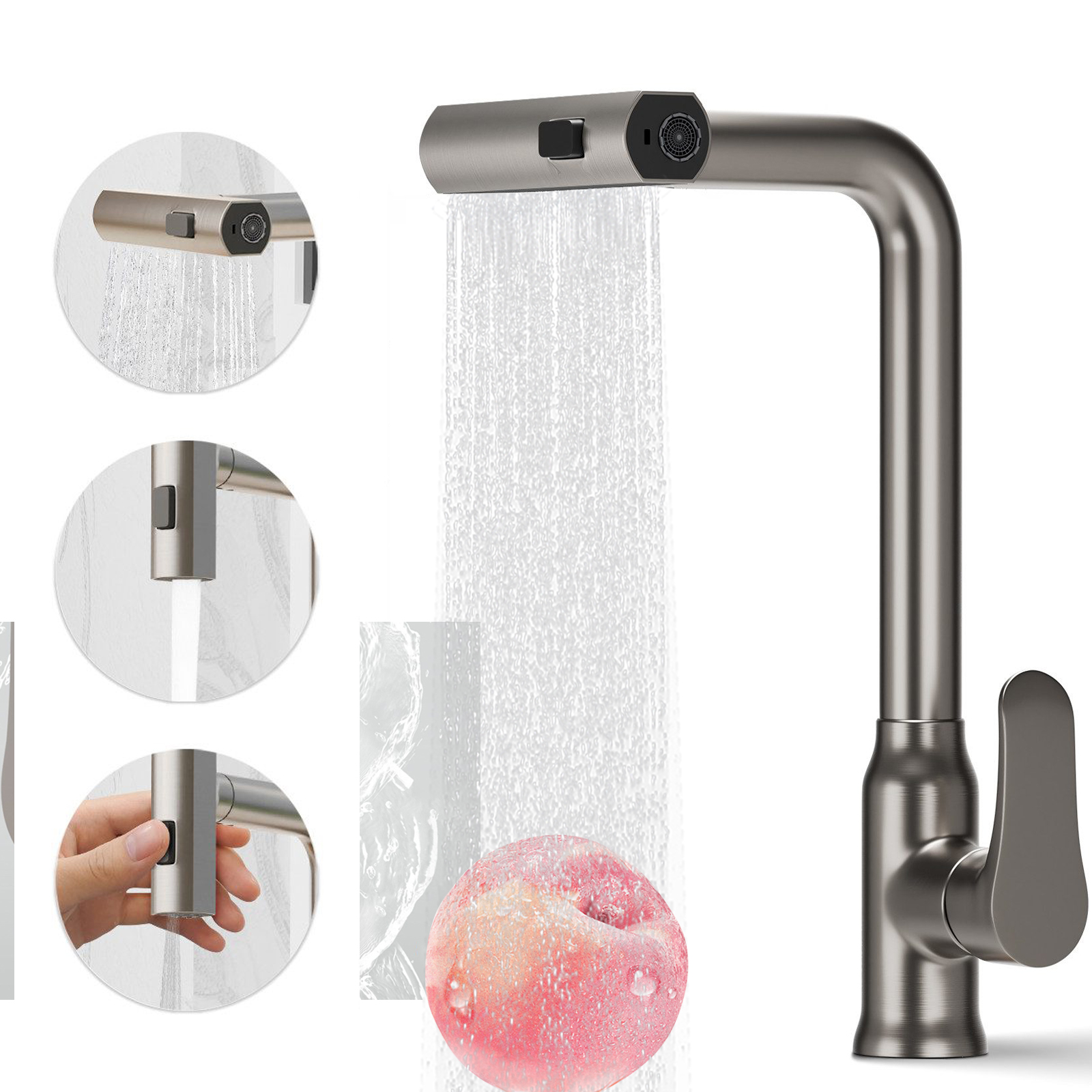 Змішувач для раковини KITCHEN, 3 режими струменя, ВИСУЙНИЙ вилив, СІРИЙ