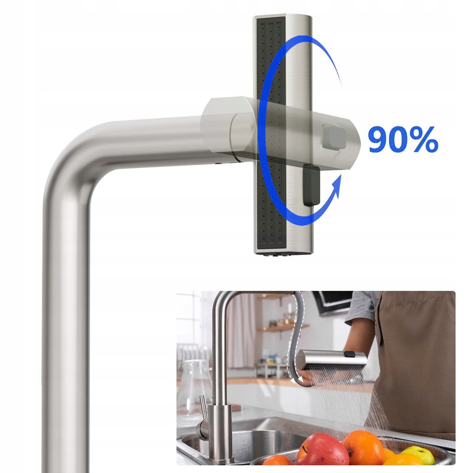 💦💧Гнучке функціонування: змішувач для раковини може обертатися на 360°, оснащений гнучким шлангом і великою зоною зливу води, що дозволяє легко дістатися та очистити кожен кут раковини, і сумісний з одинарною або подвійною раковиною. Раковину легко мити, а висувна головка розпилювача запобігає розбризкуванню води.🍳🥘🍲