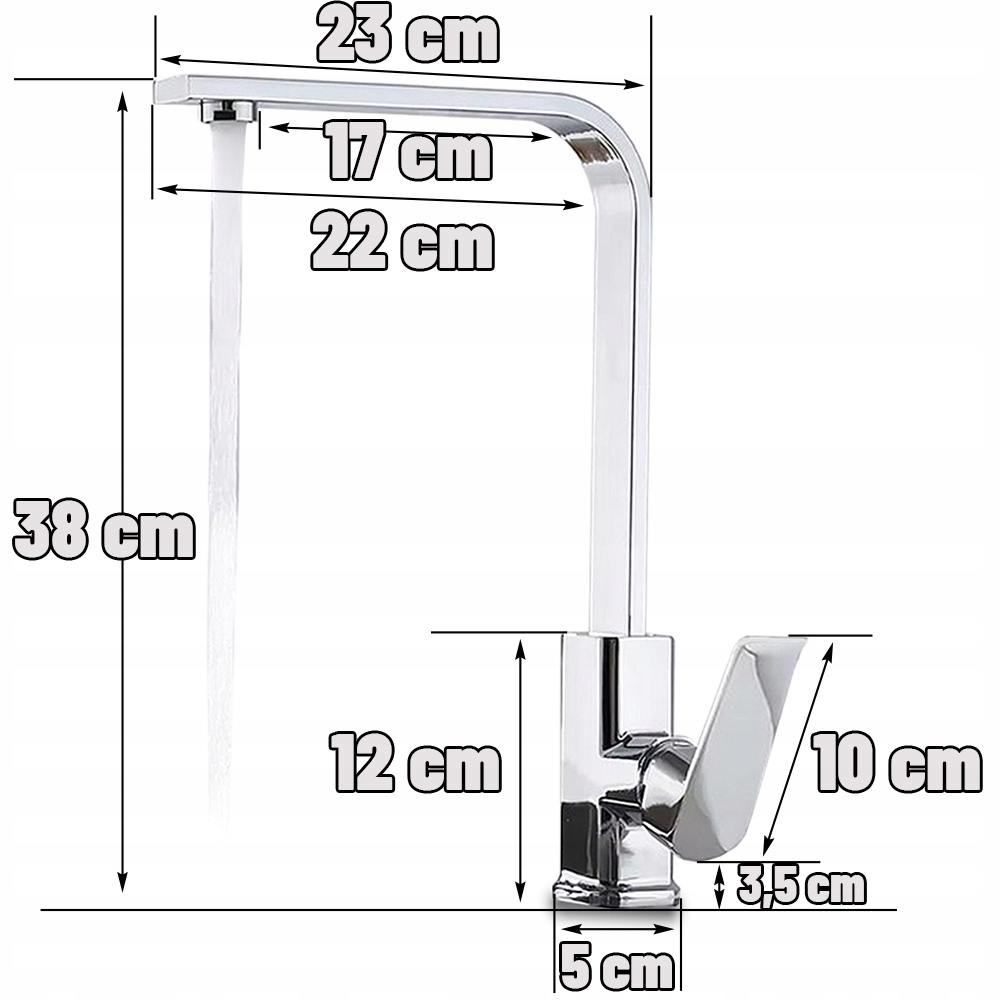 Змішувач для раковини КУХНЯ, ВИСОКИЙ ПОВОРОТ, КВАДРАТ, ХРОМОВАНА СТРІЧКА ДЛЯ МИЙКИ