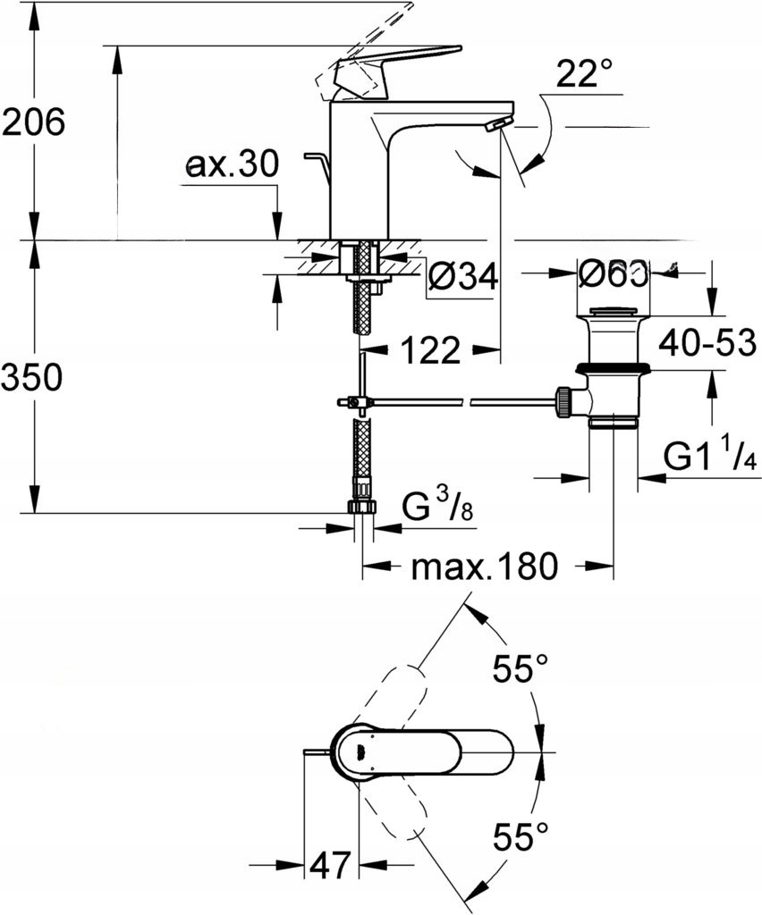 Встановлення на один отвір, металевий важіль, керамічний картридж GROHE SilkMove 35 мм, регульований обмежувач витрати, хромована обробка GROHE StarLight, аератор GROHE EcoJoy 5,7 л/хв, система швидкого монтажу GROHE QuickFix, сливний набір із тяговою планкою 1 1/ 4", гнучкі з'єднувальні шланги, мінімальний рекомендований тиск 1,0 бар, додатковий обмежувач температури (46 375 000), хромований колір, ефект на довгі роки, ретельно вишуканий дизайн і довговічне хромоване покриття GROHE StarLight. плавне та комфортне використання завдяки GROHE SilkMove надзвичайно легко та Система швидкого монтажу GROHE QuickFix. Екологічний продукт від постачальника EcoJoy, який економить витрати води та грошей у вашій кишені