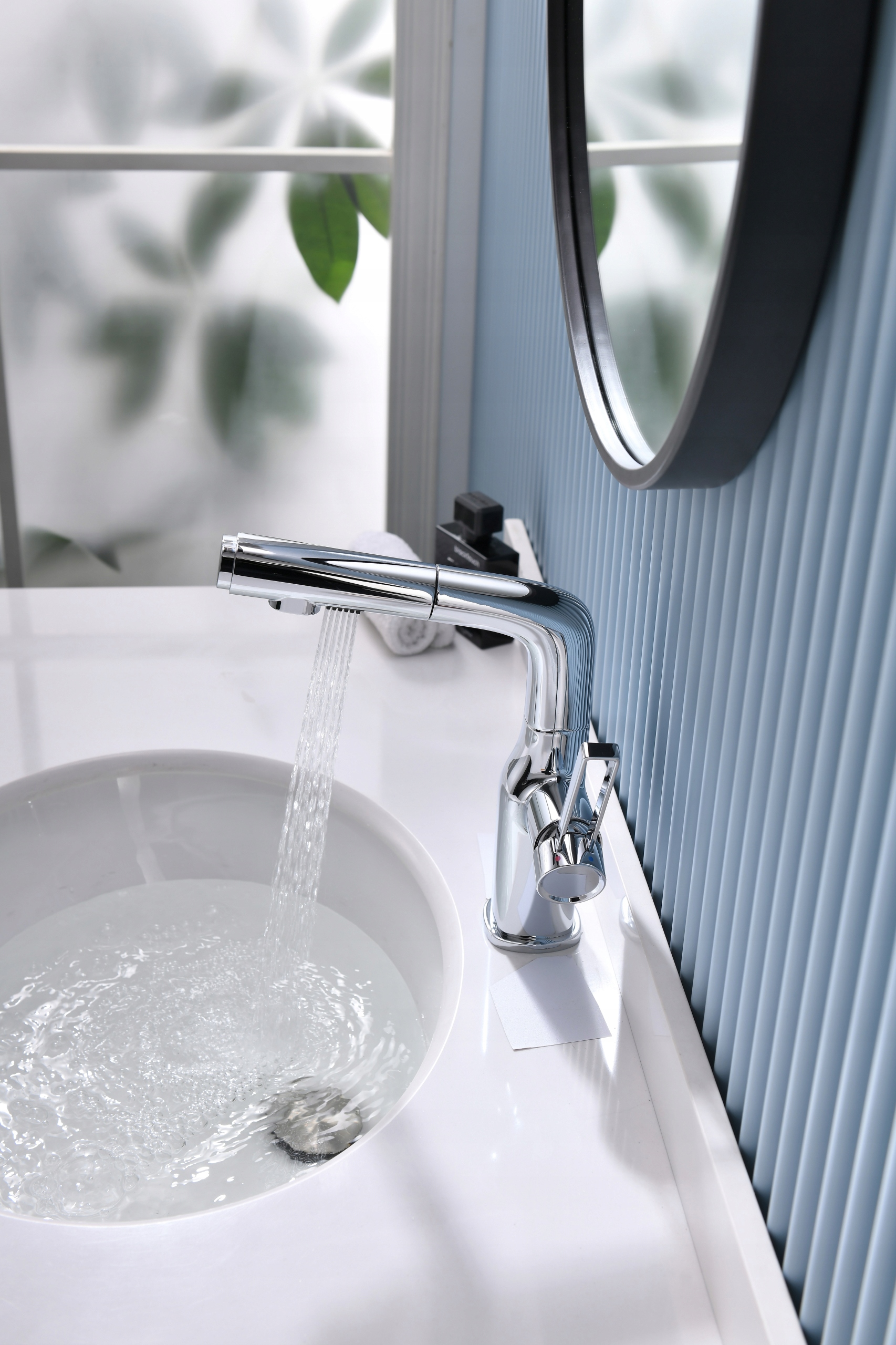Представляємо вашій увазі змішувач для умивальника CHROME в сучасному стилі, З ВИСУВНИМ ЛИСТОМ ТА ФУНКЦІЄЮ ПІДЙОМУ ВИЛИВУ