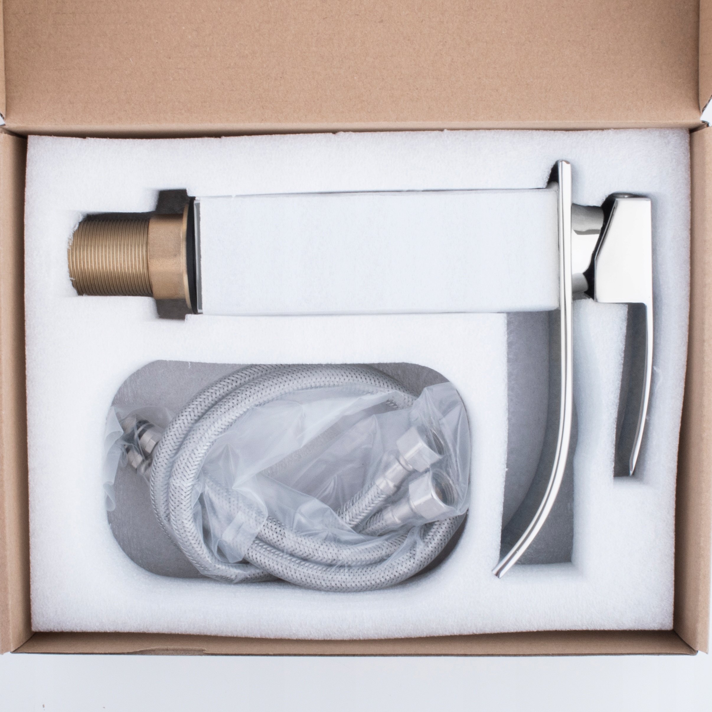 В набір входять 2 високоякісних шлангаз нержавіючої сталі в оплітці довжиною 50 см зі стандартним 3/8 дюйма підключення та набір аксесуарів для установки акумулятора.