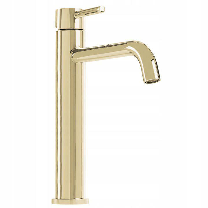 Високий світло-золотистий змішувач для умивальника Lungo оснащений практичною керамічною головкою та верхнім аератором, завдяки чому рівень споживання води з крана зведено до мінімуму. Аксесуар міцний і стійкий до механічних пошкоджень і подряпин.