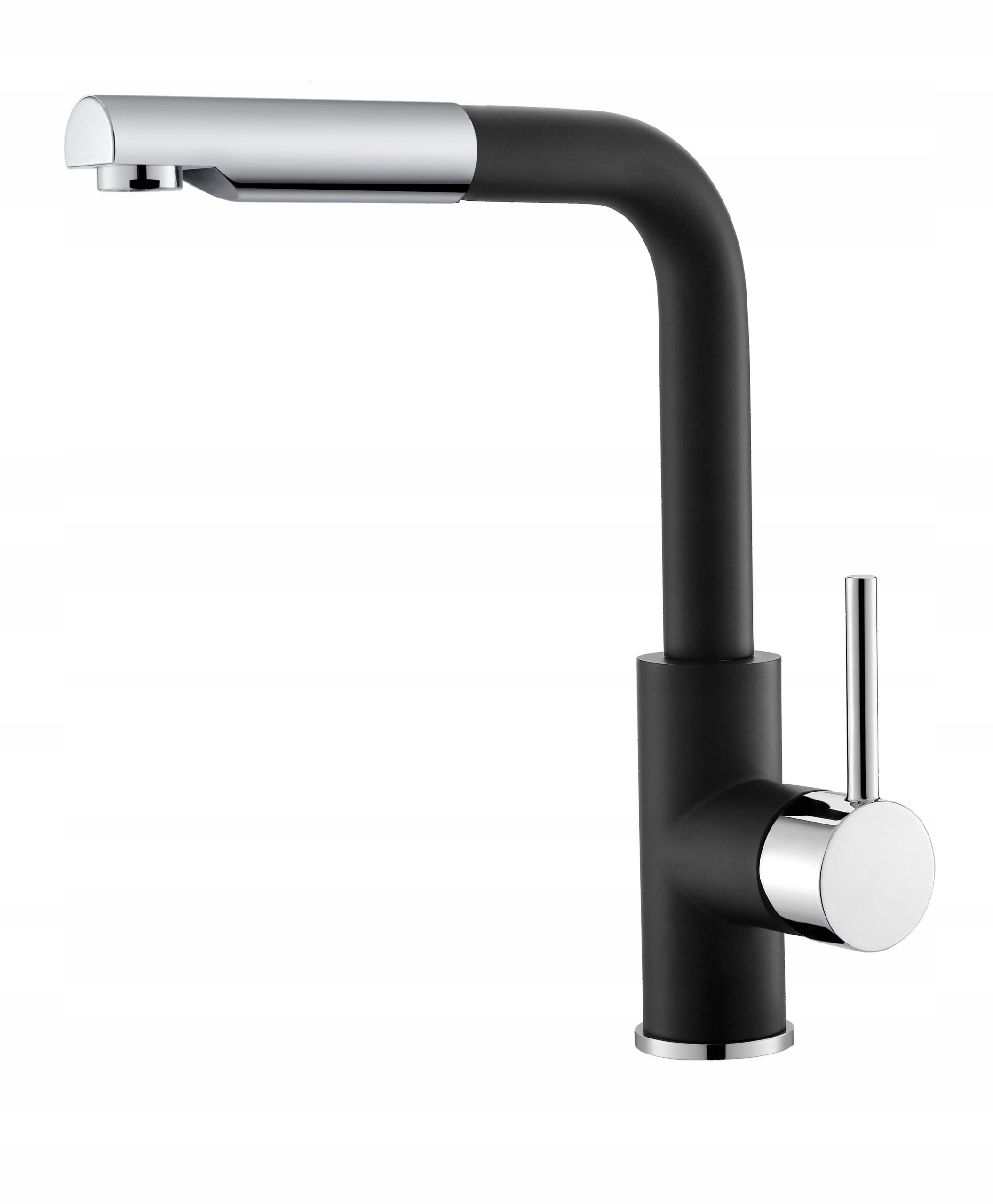 Змішувач двоколірний: корпус і більша частина виливу виконані в чорному кольорі, що пасує до чорних умивальників Moderno, а ручка та висувний вилив оздоблені високоякісним хромом.