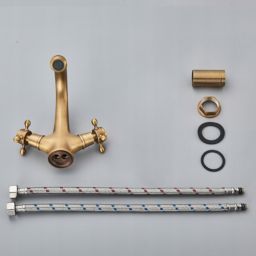 Змішувач для раковини Low RETRO Змішувач для ванної кімнати з аератором BRASS Ari